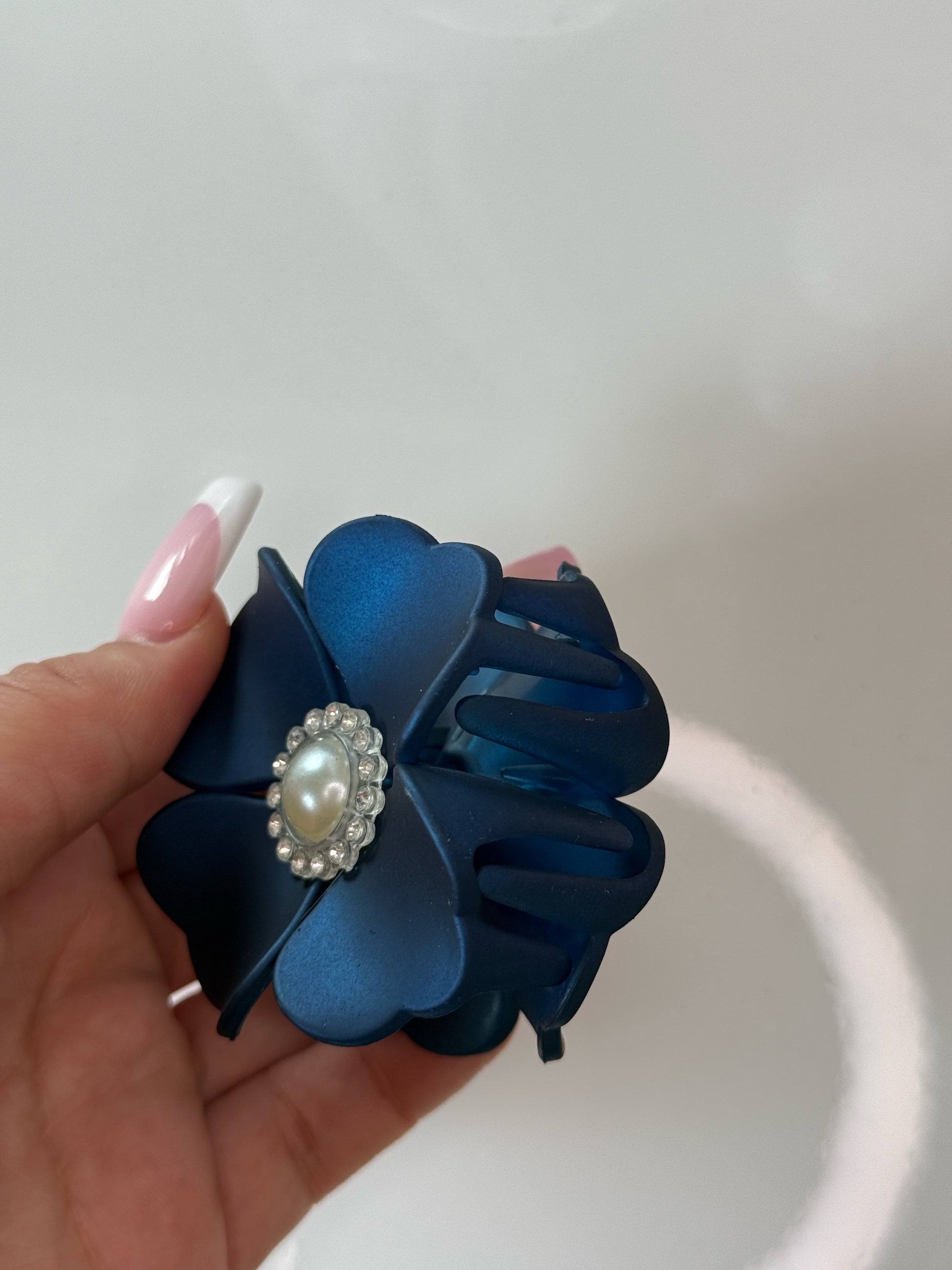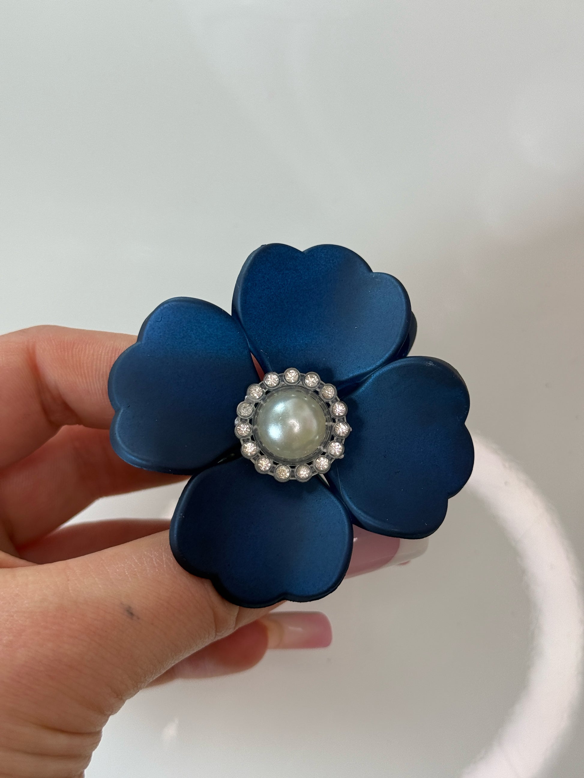 💙 Modrý květinový skřipec s perlou uprostřed