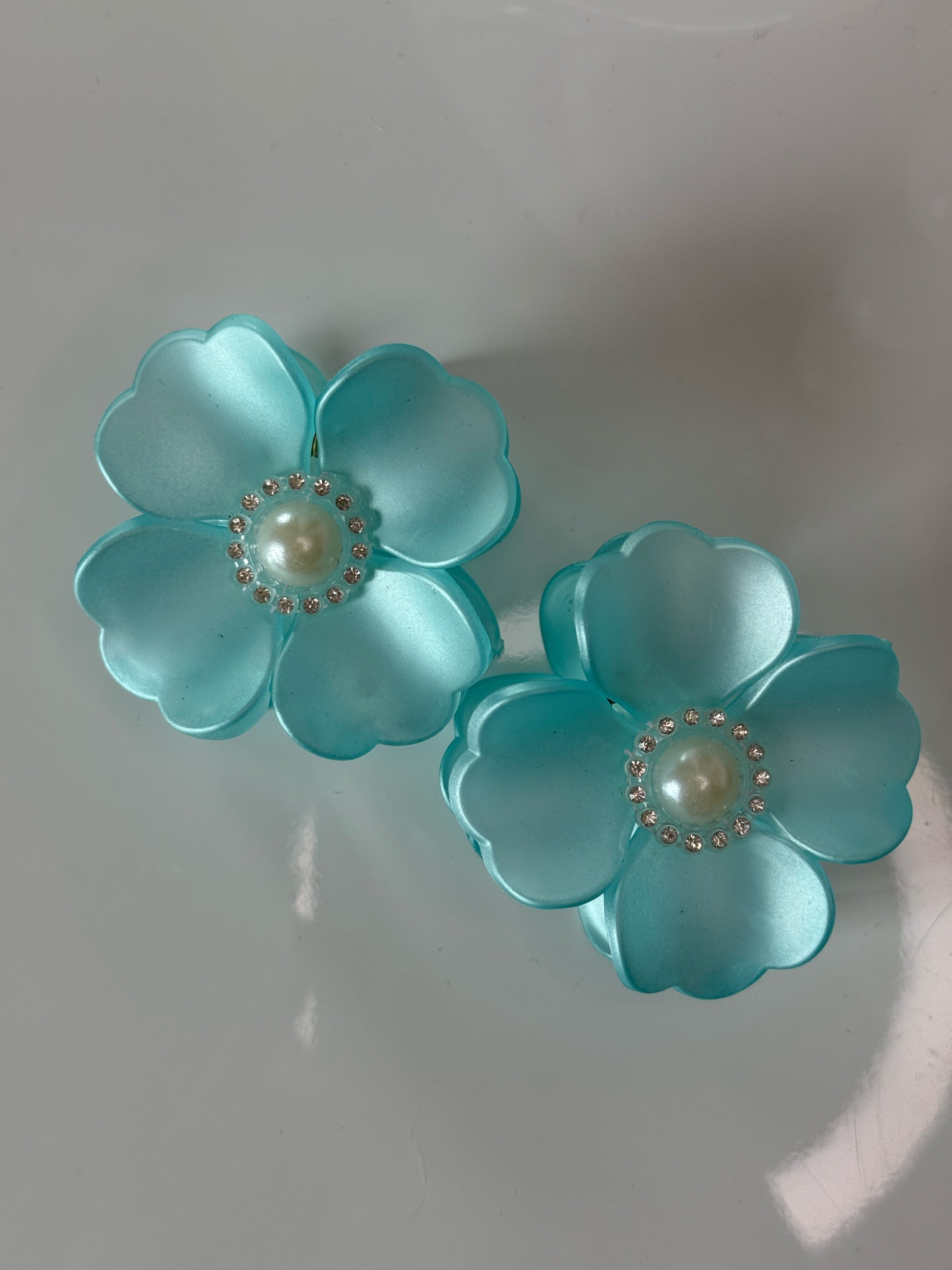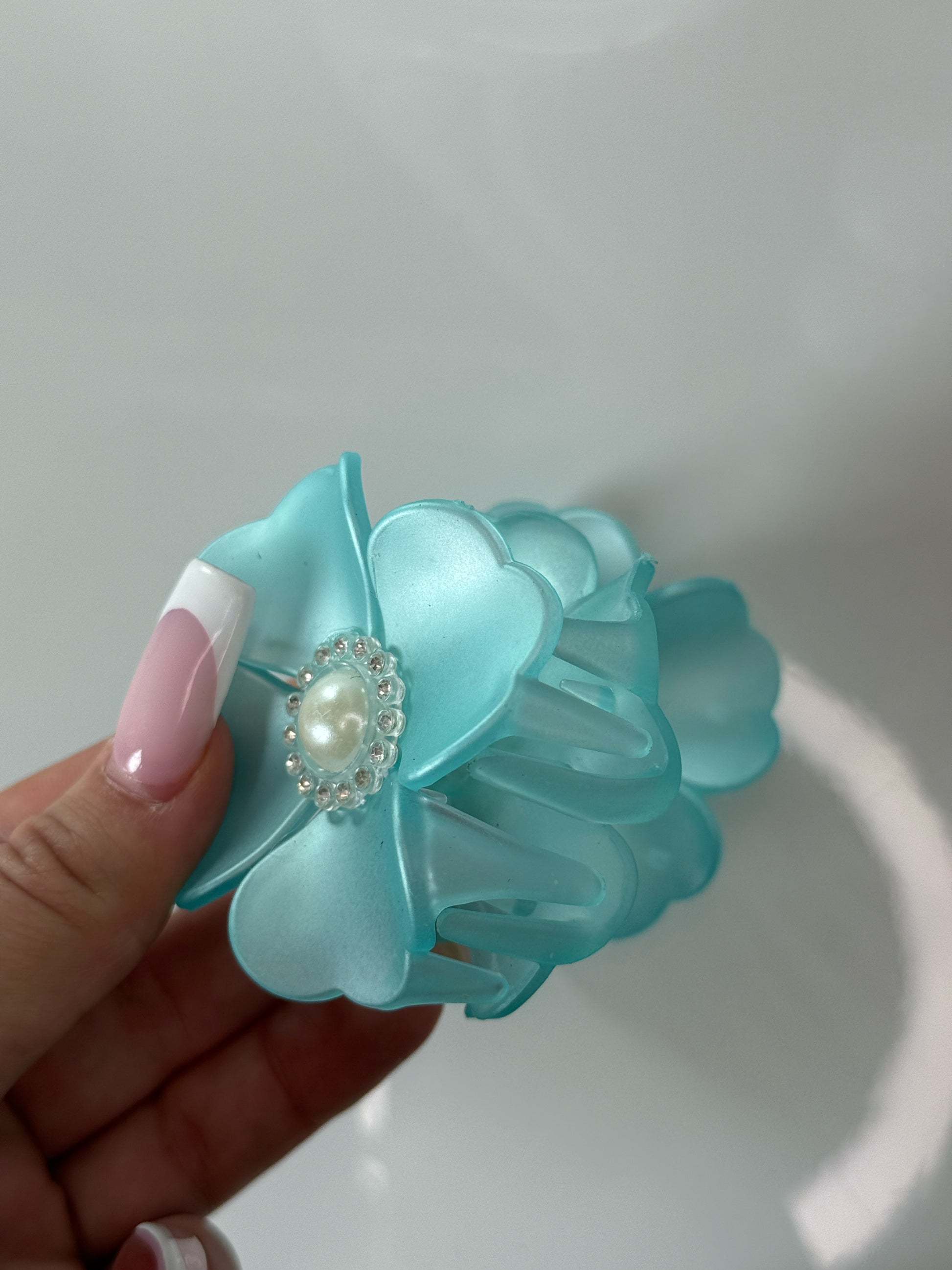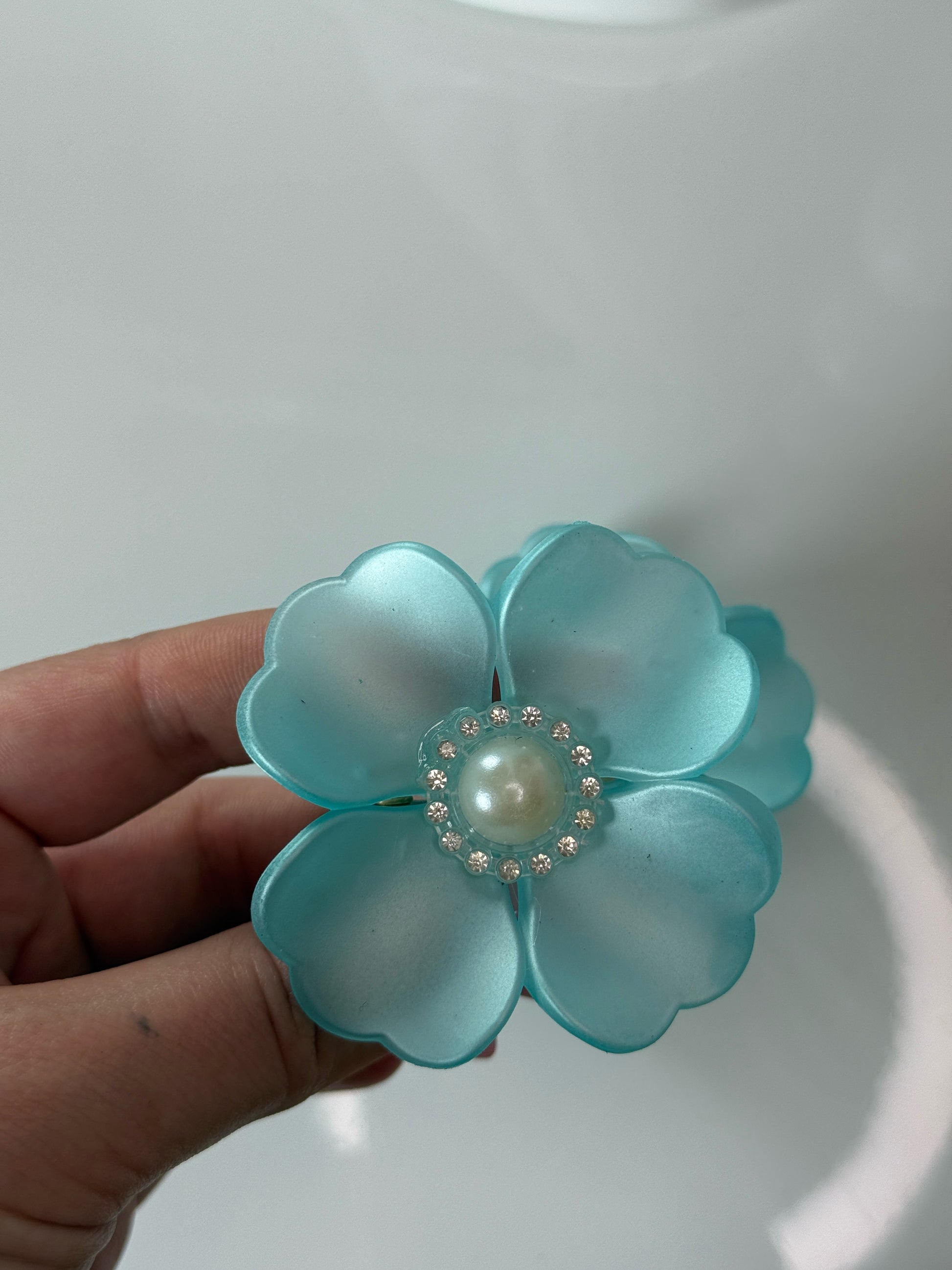 💎 Tyrkysový květinový skřipec s perlou uprostřed