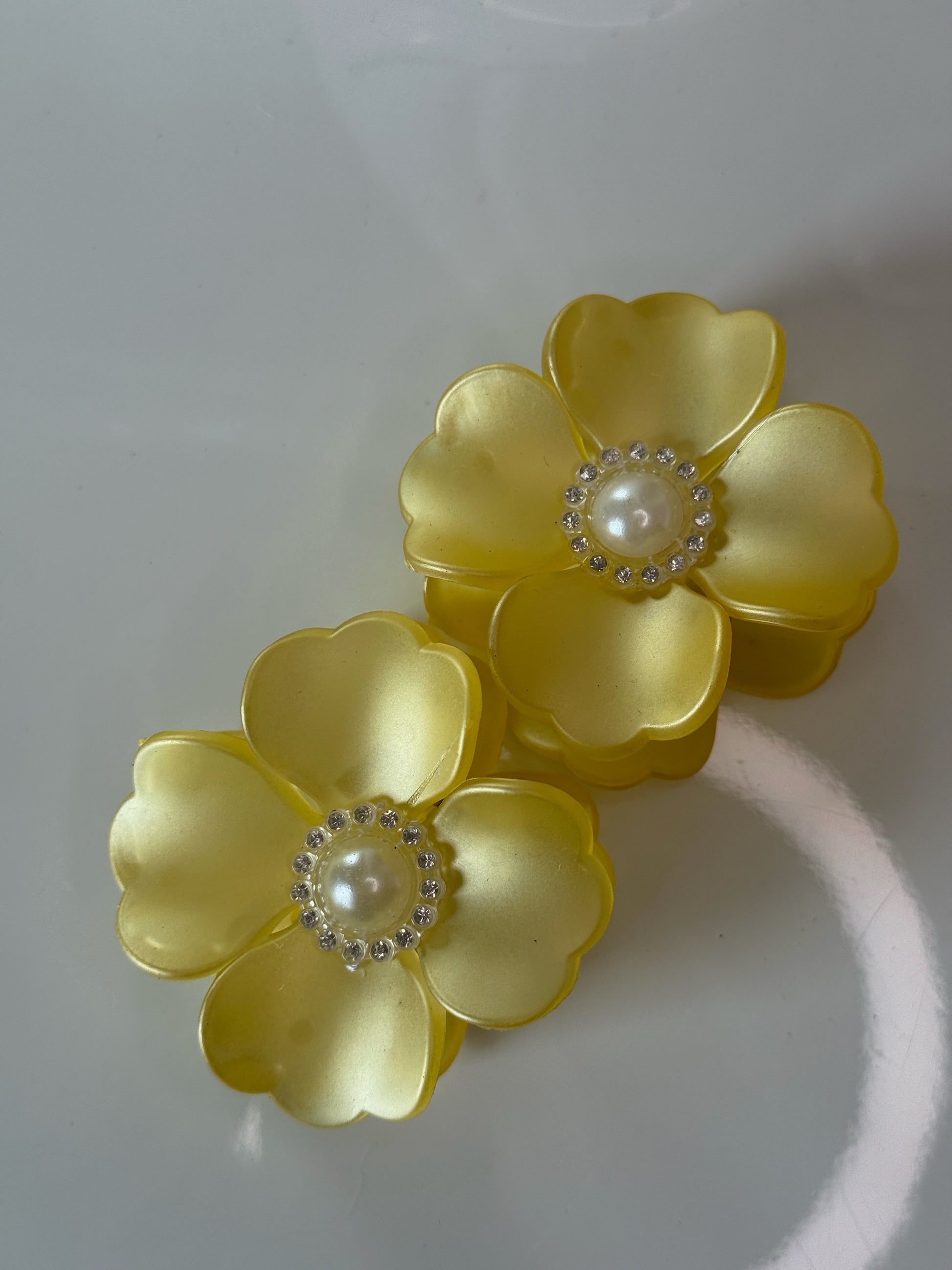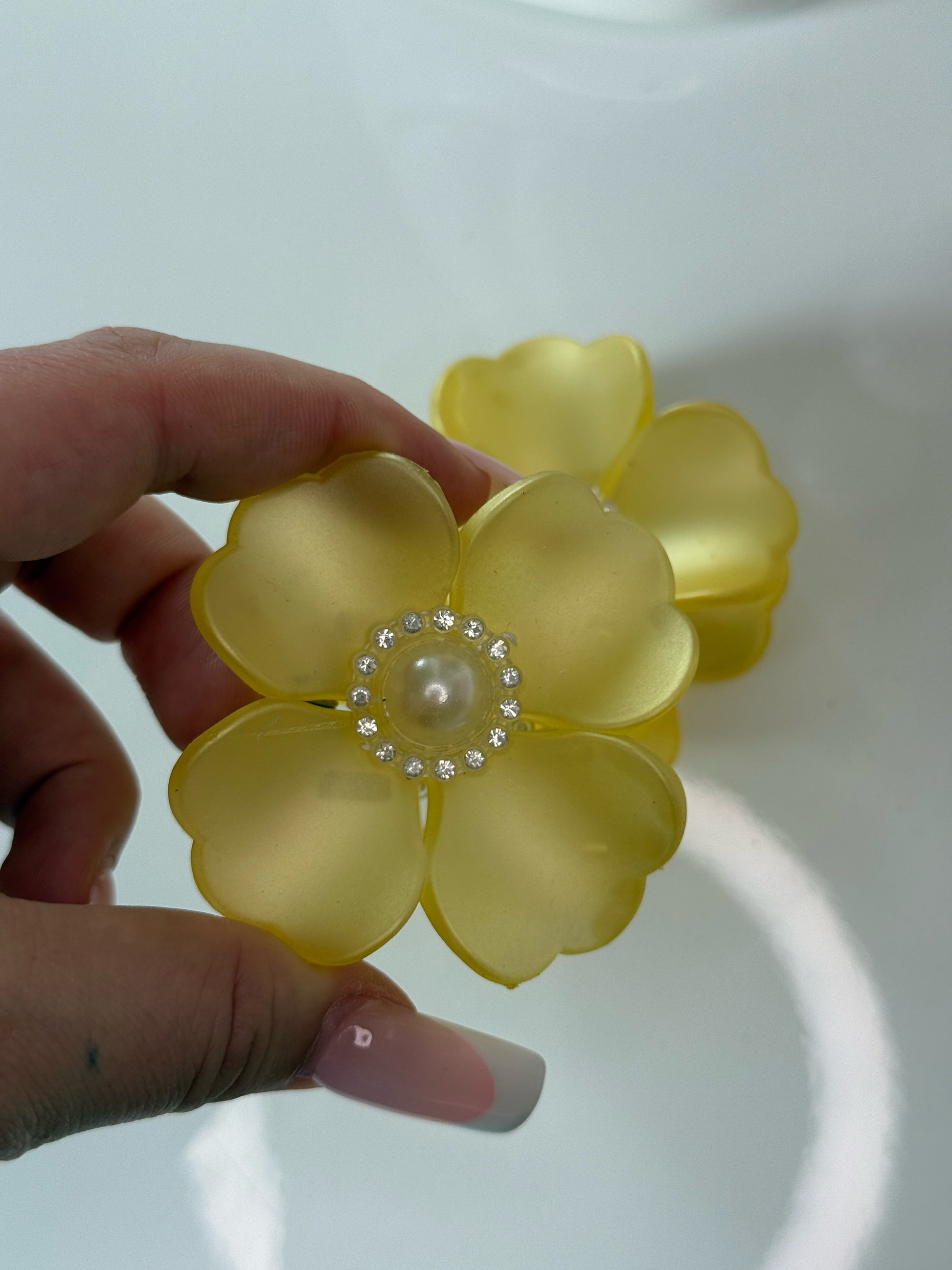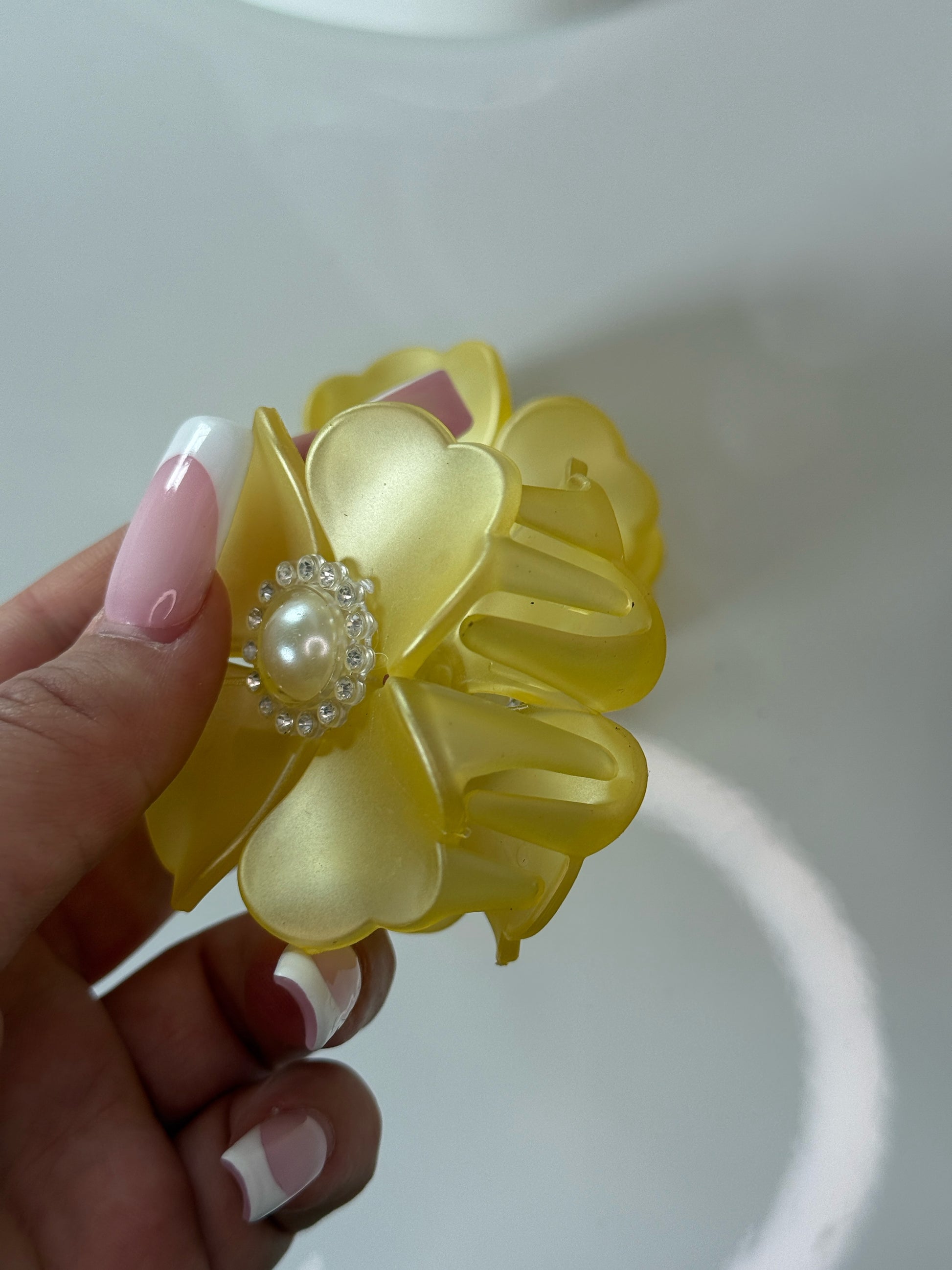💛 Žlutý květinový skřipec s perlou uprostřed