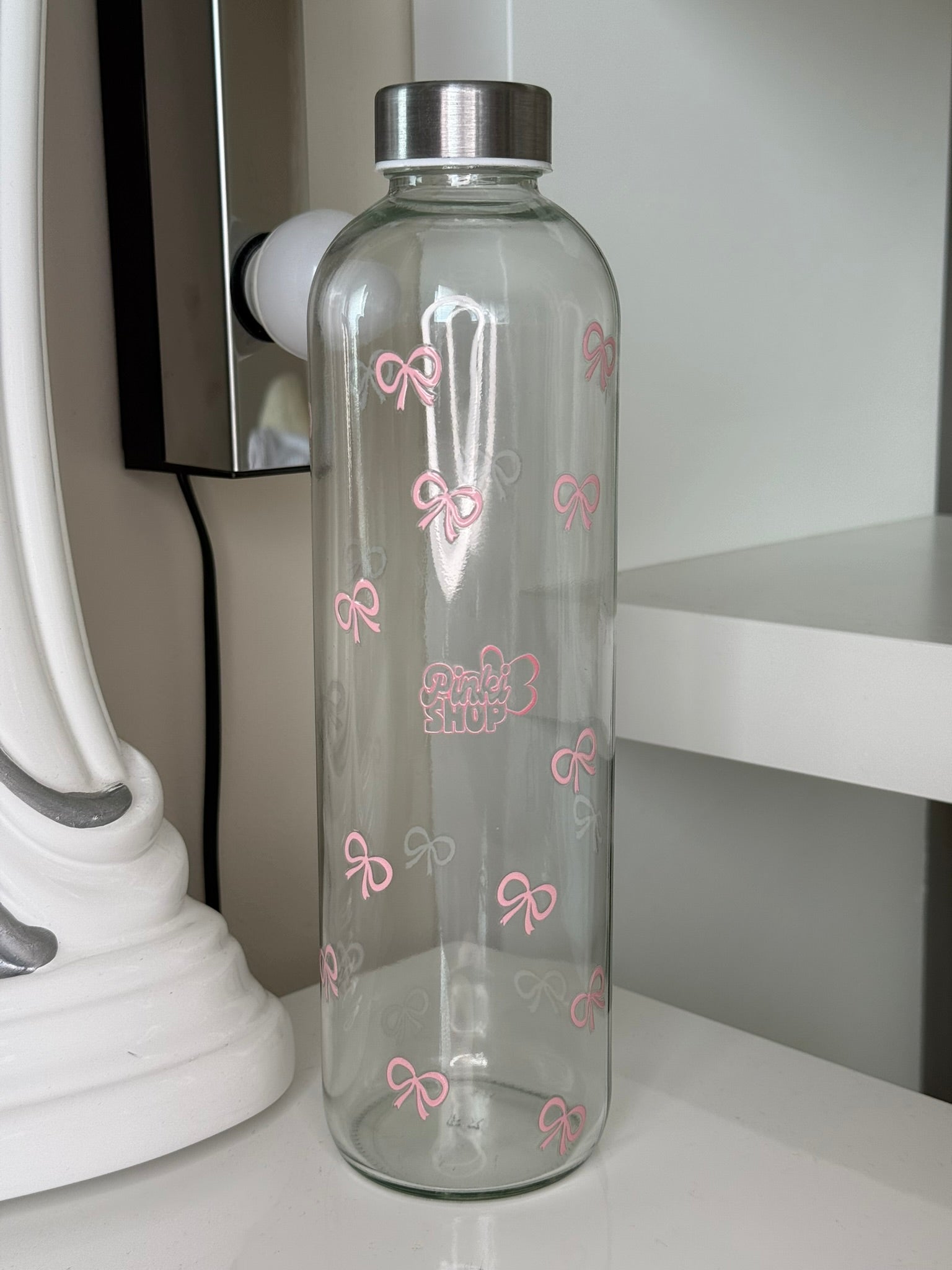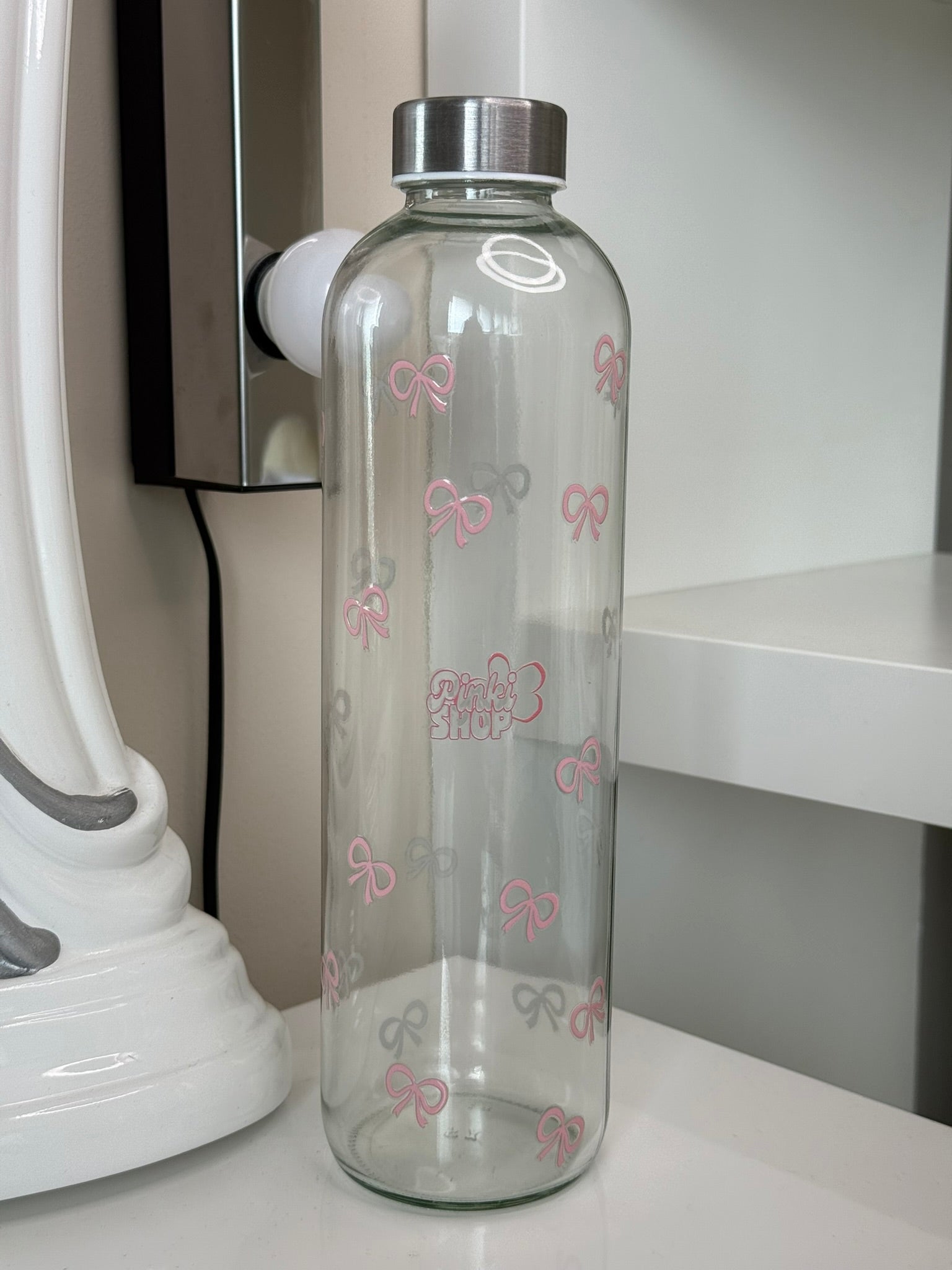 Stylová skleněná láhev s mašličkami je ideálním parťákem do školy, do práce i na cesty. Díky objemu 980 ml budeš mít vždy po ruce dostatek pití a navíc se stane tvým originálním doplňkem.