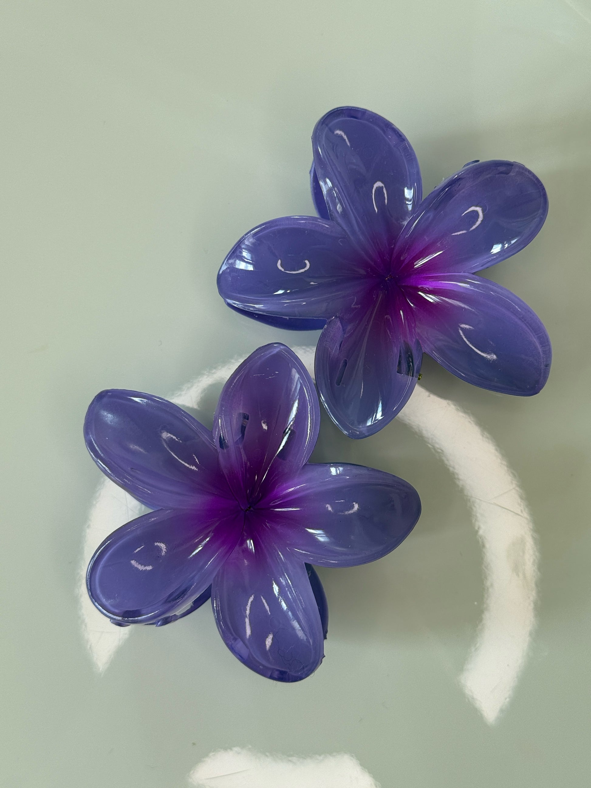 Lesklý květový skřipec do vlasů tmavě Fialový 8cm