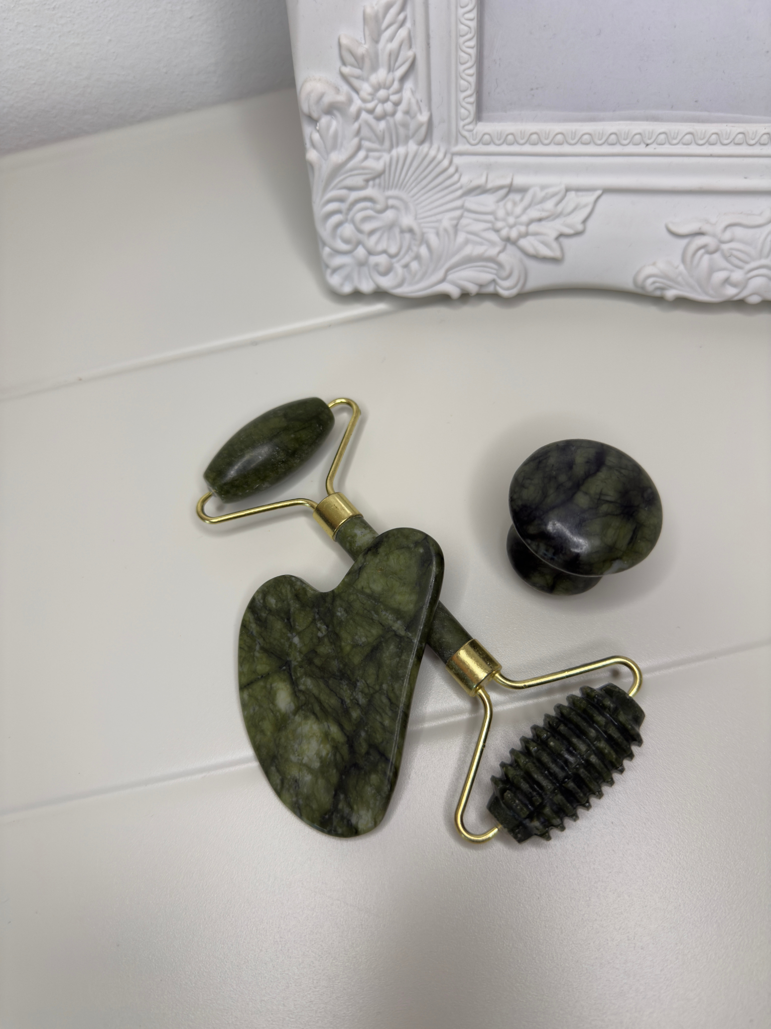 Masážní sada na obličej: face roller + dárek gua sha kámen