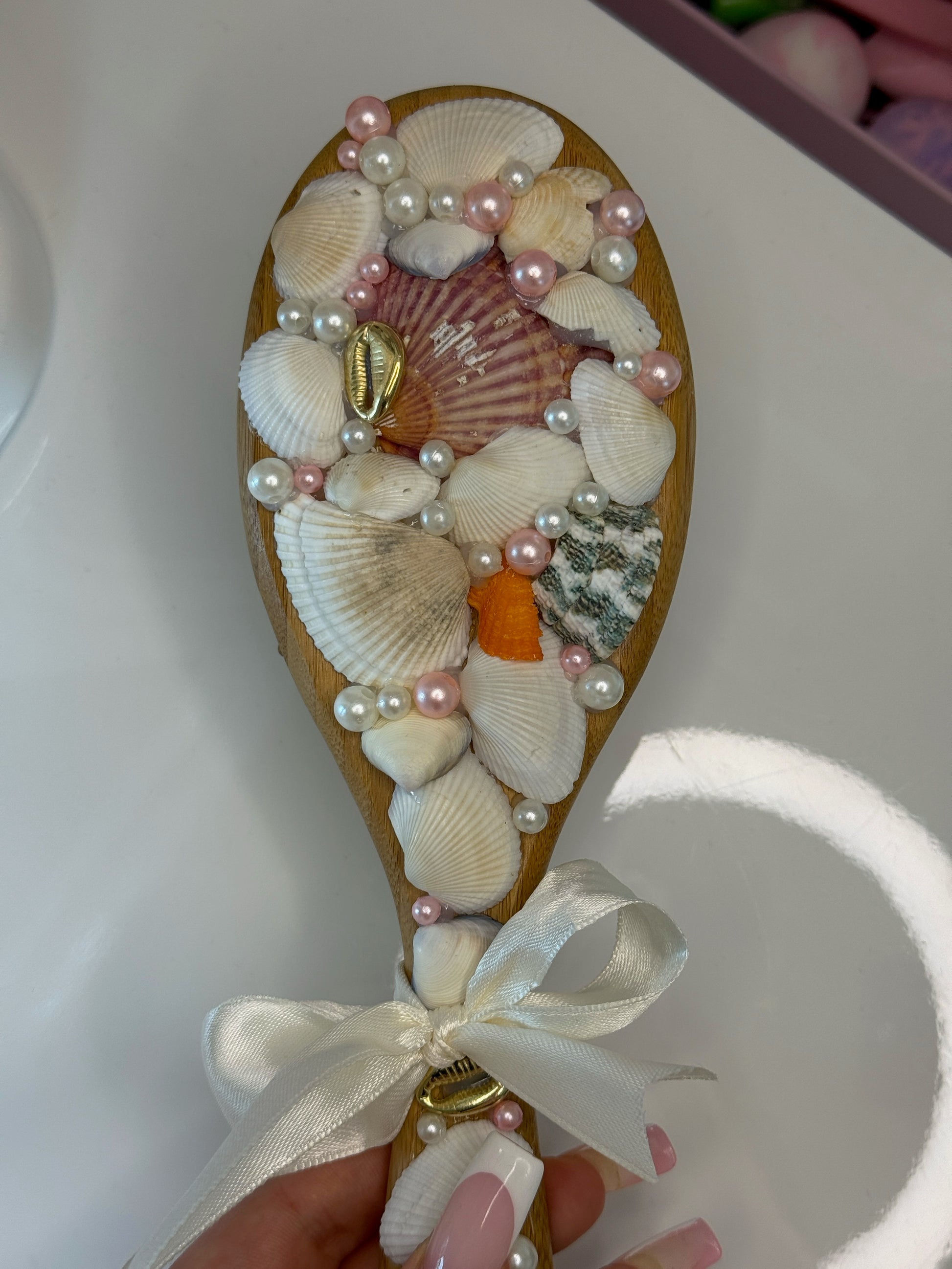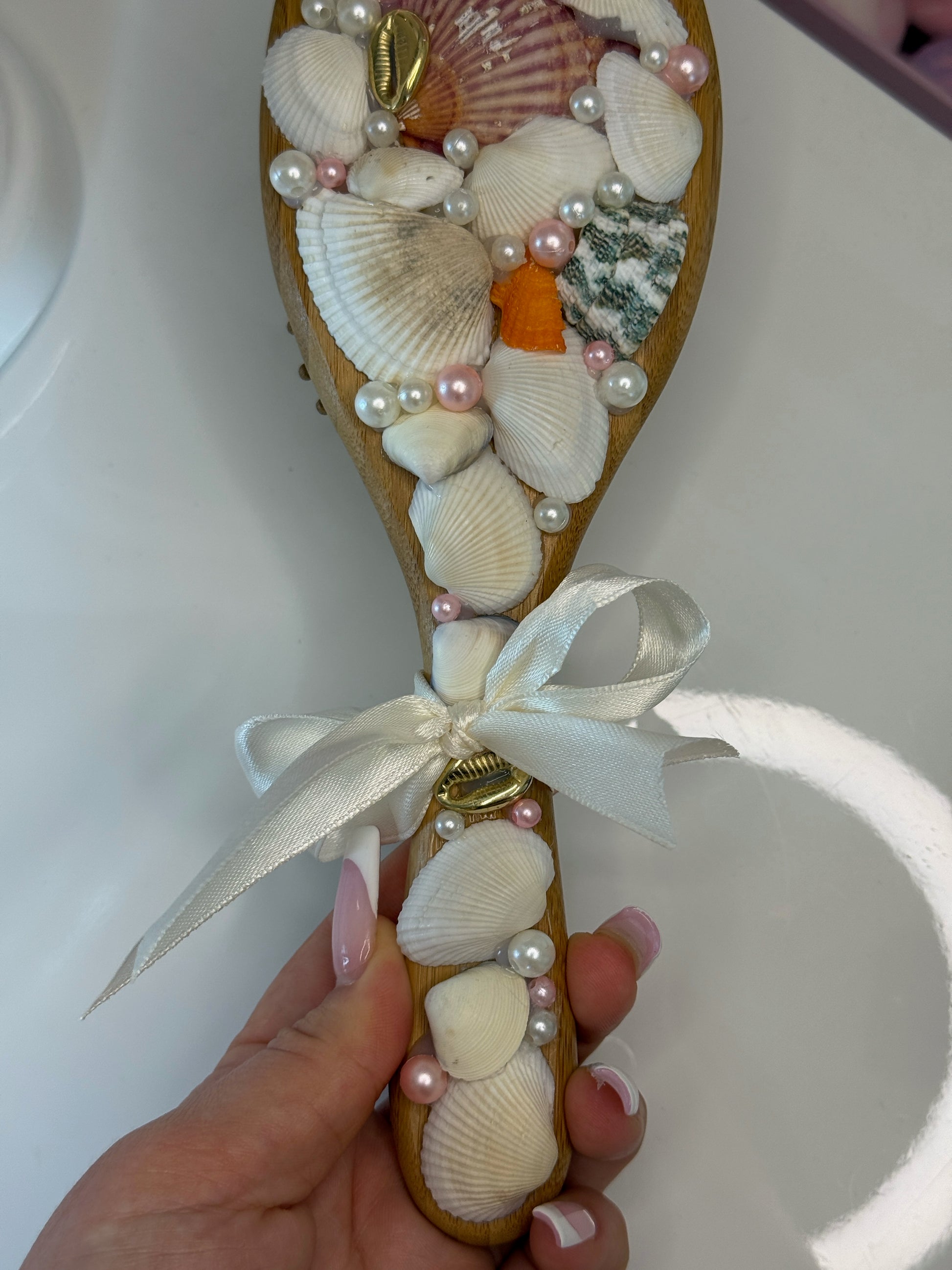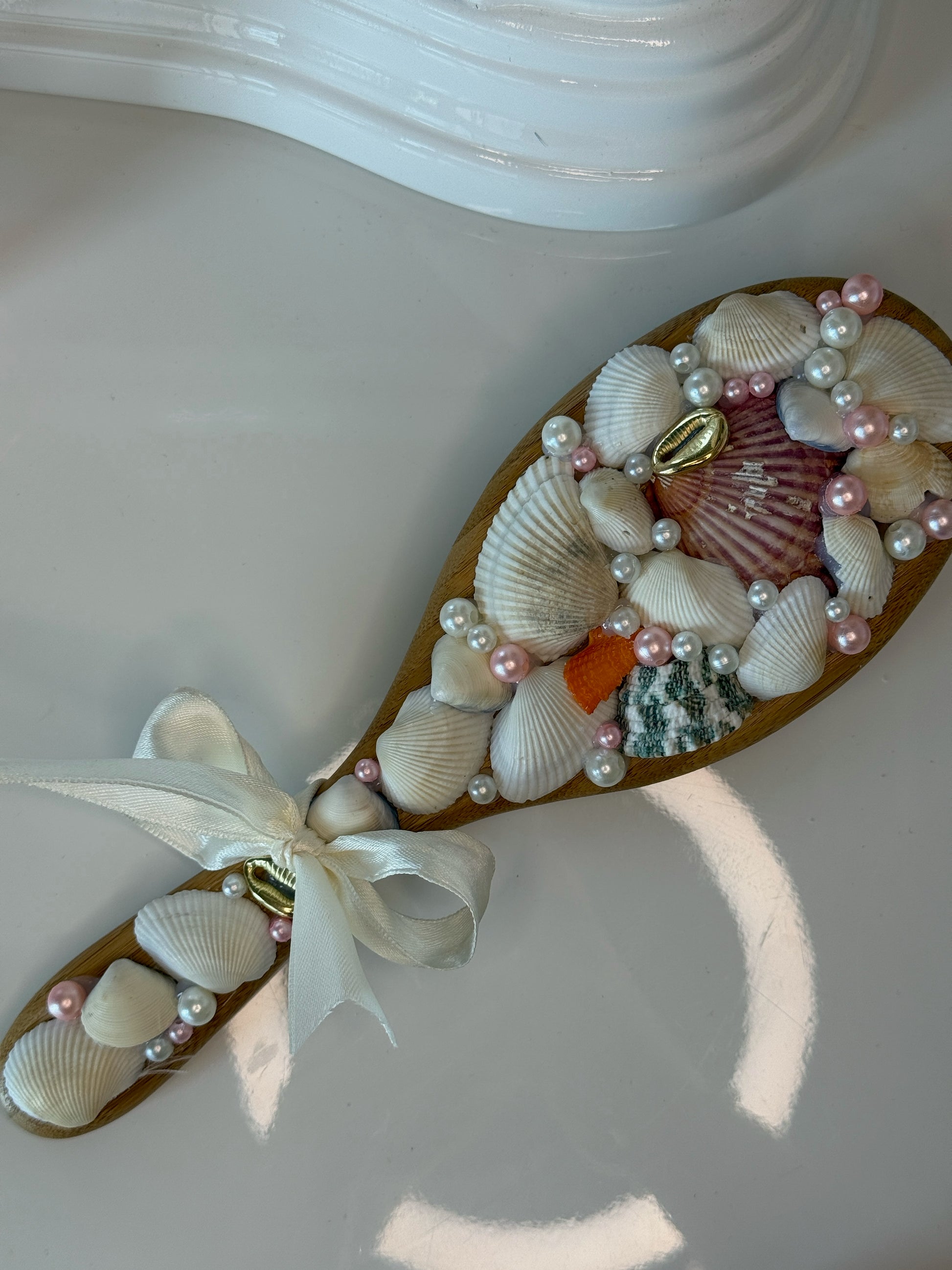 ✨ Tento hřeben není jen praktický doplněk, ale malý umělecký kousek! Je ručně zdobený jemnými mušlemi a perličkami, které dodávají každodennímu česání dotek elegance a originality. Každý kus je unikát – výsledek pečlivé ruční práce.