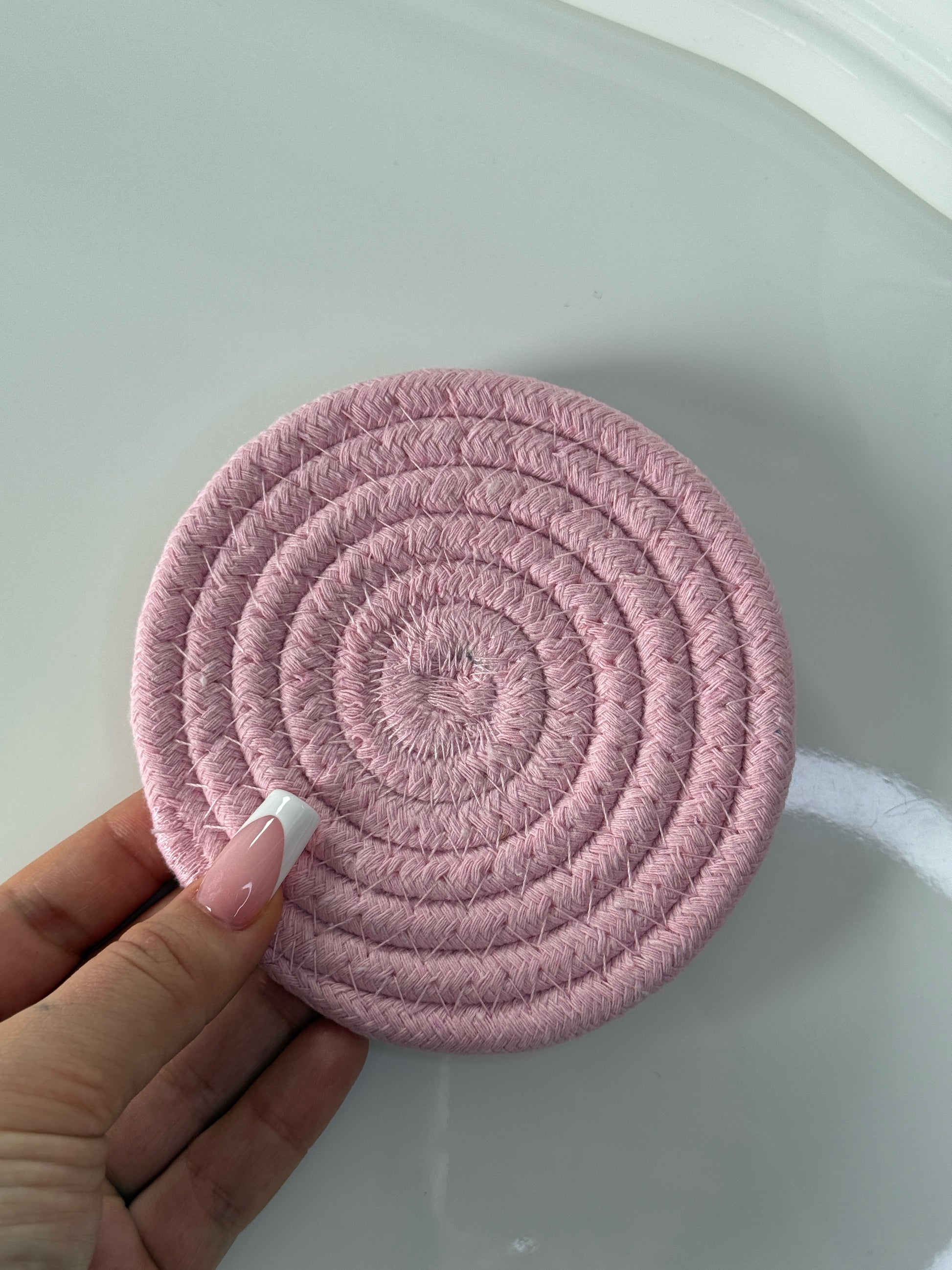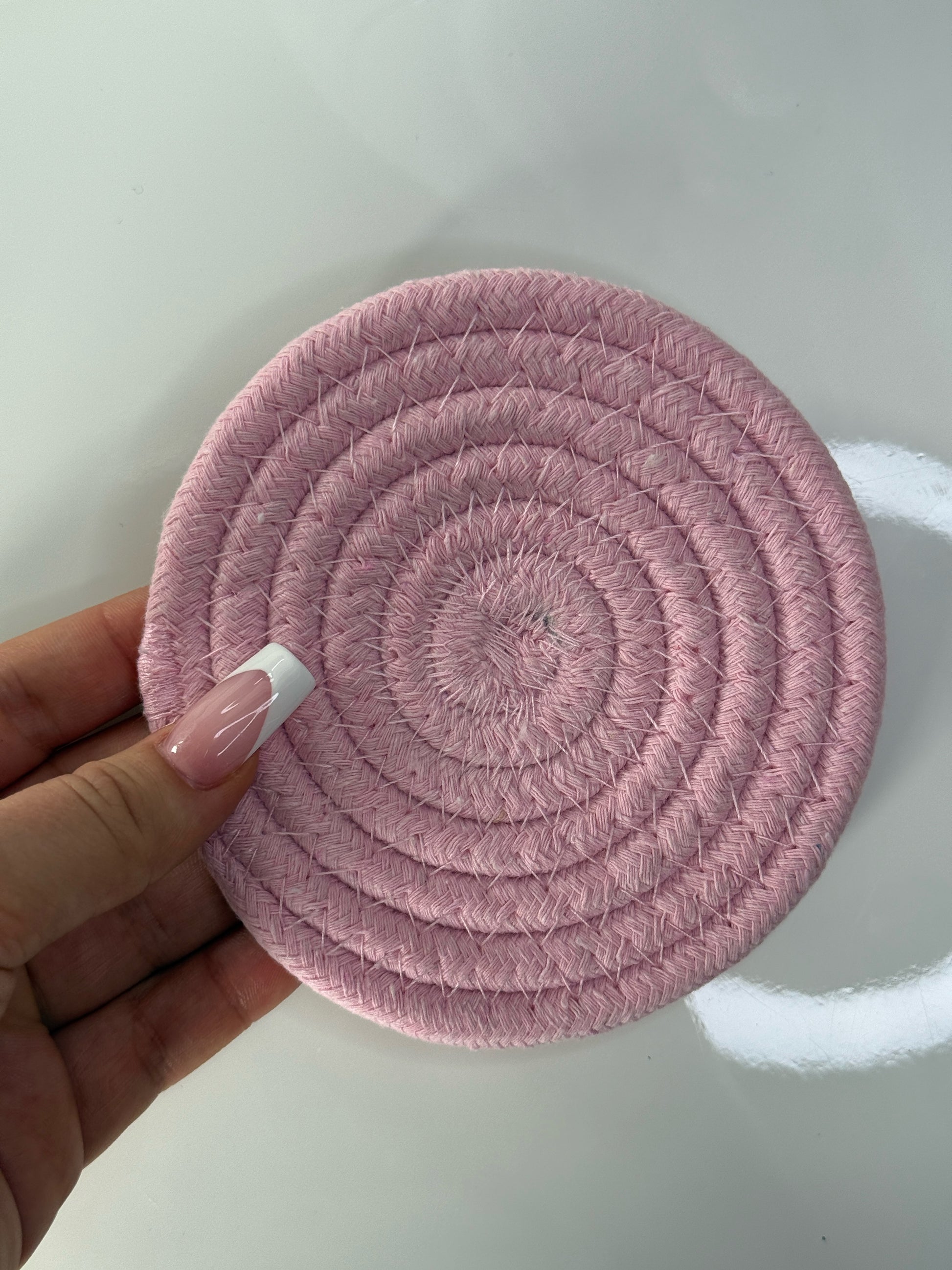 Stylový podtácek z textilního provázku v jemné růžové barvě je praktický i dekorativní doplněk pro tvůj domov. Hodí se pod skleničky, hrnky, svíčky i drobné dekorace. Díky spirálovému tkaní působí přírodně a čistě – skvěle se hodí do moderního i romantického interiéru.