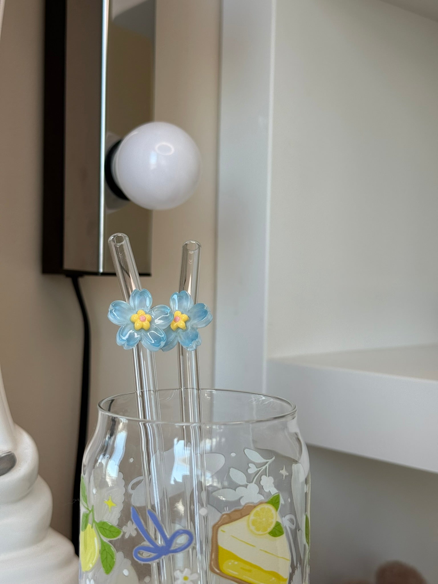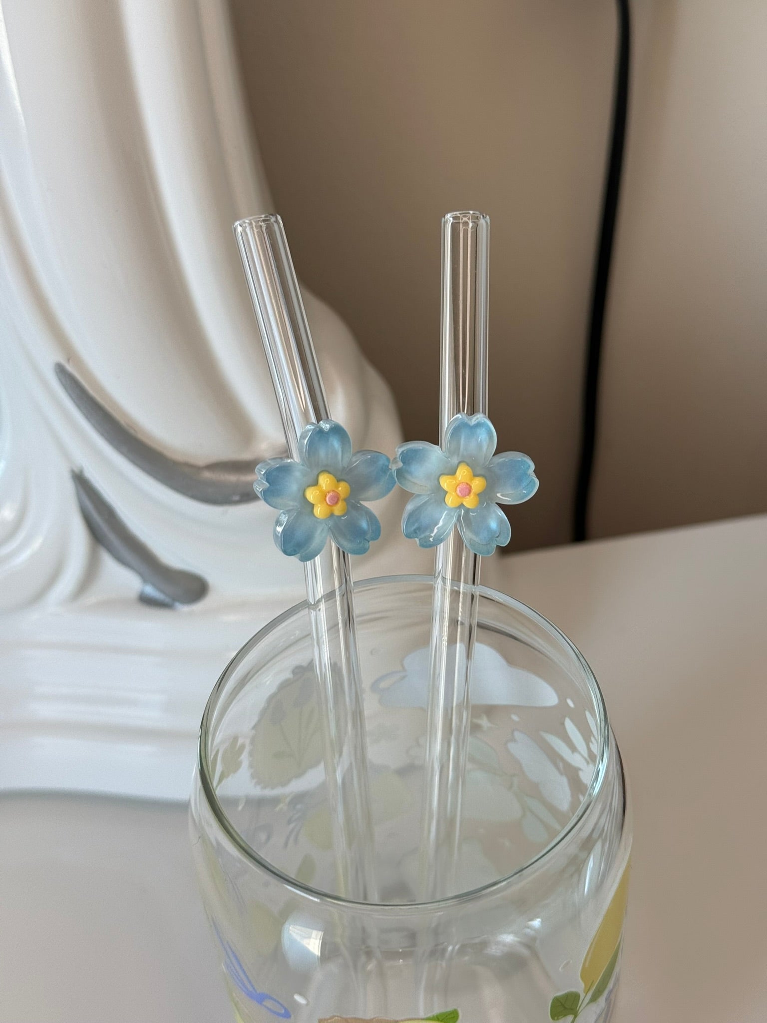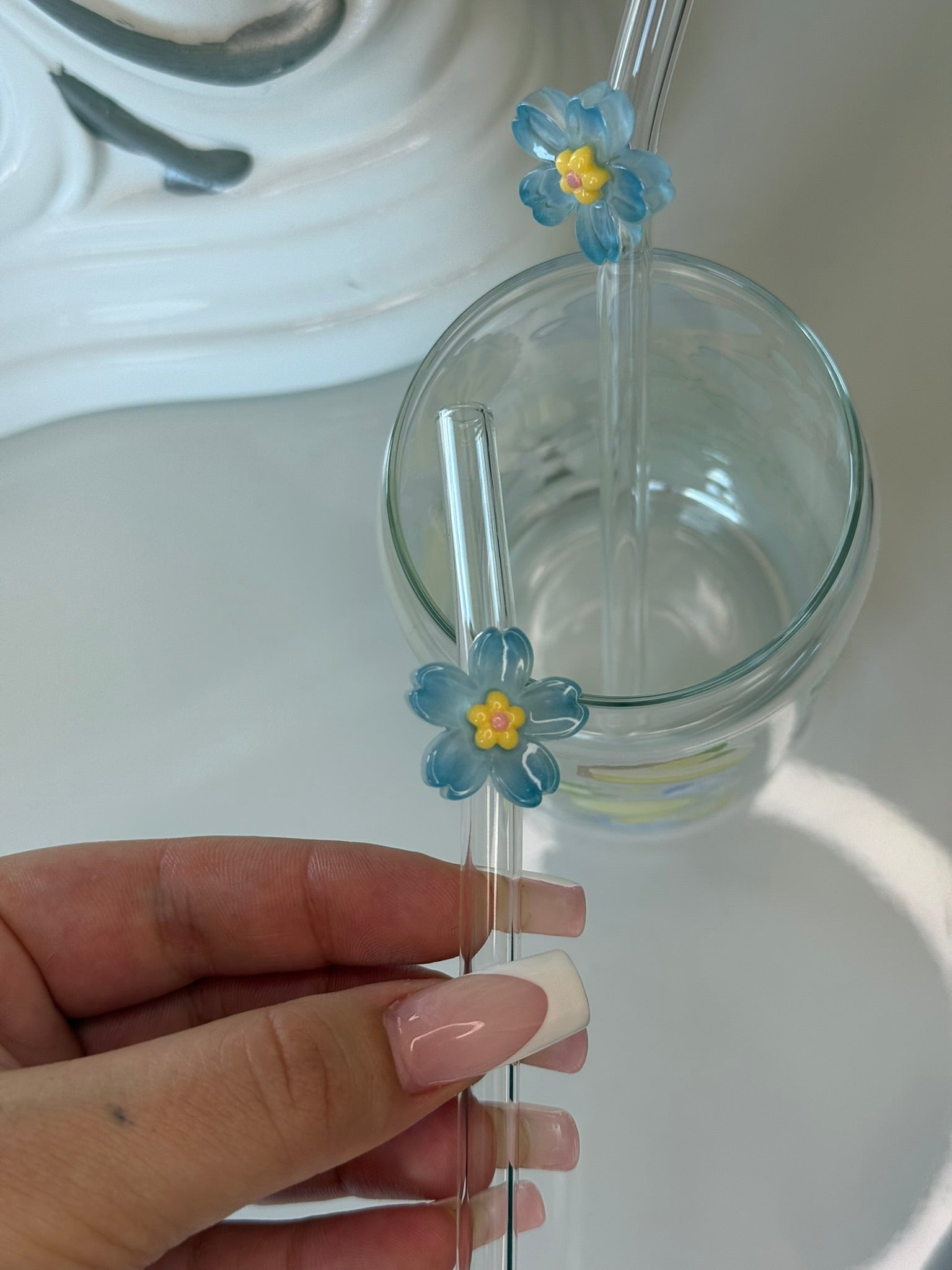 💙 Skleněné brčko s modrou květinou – svěží elegance každý den