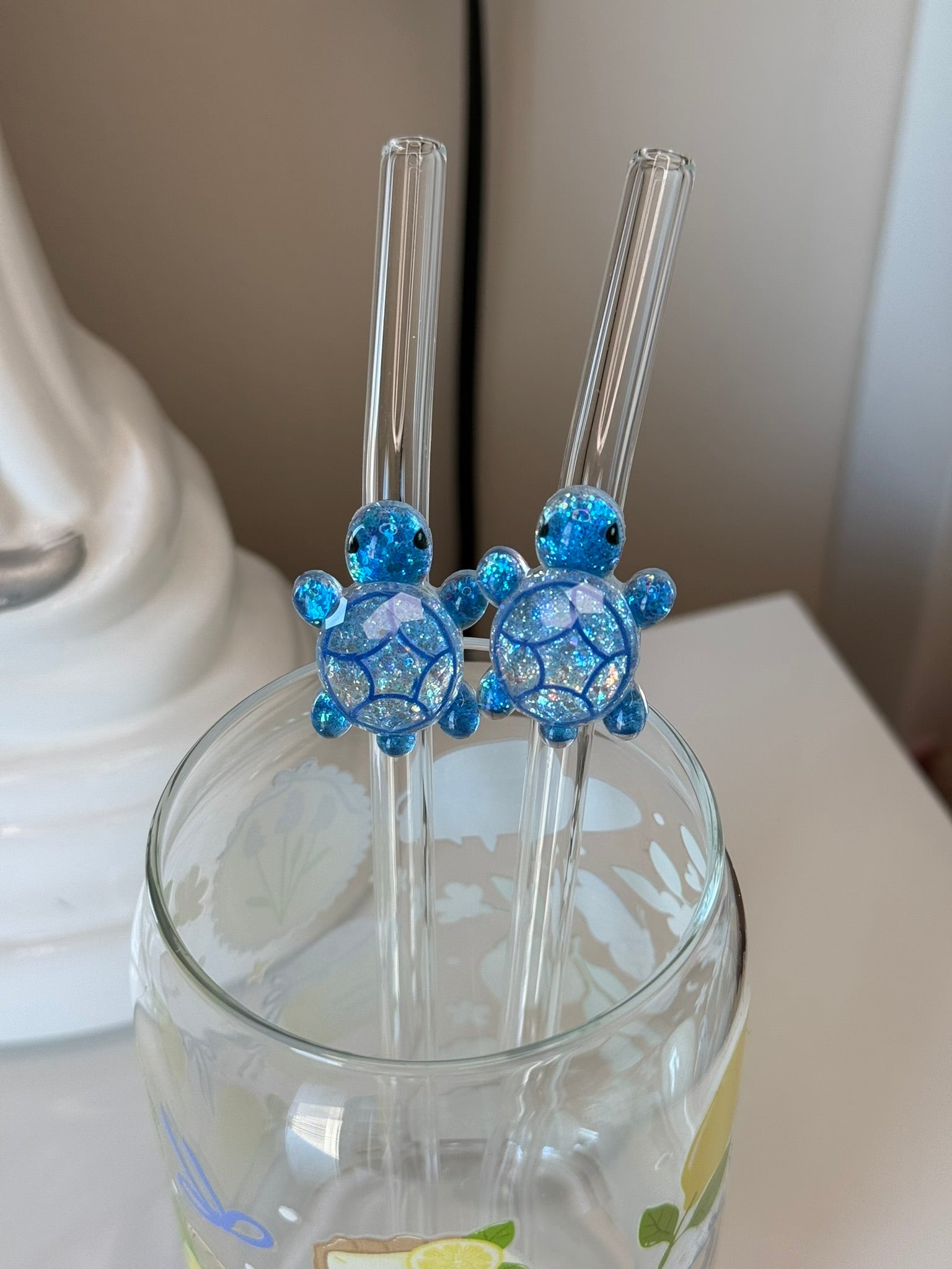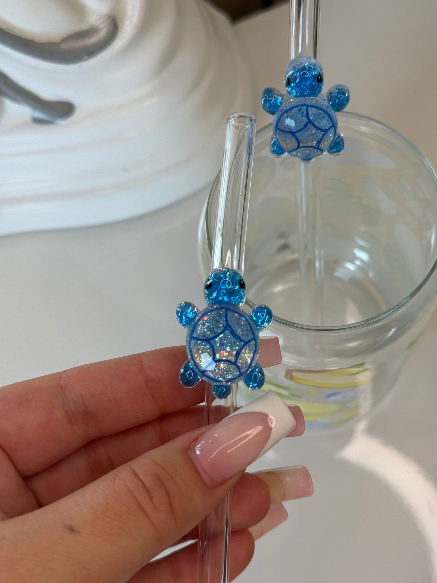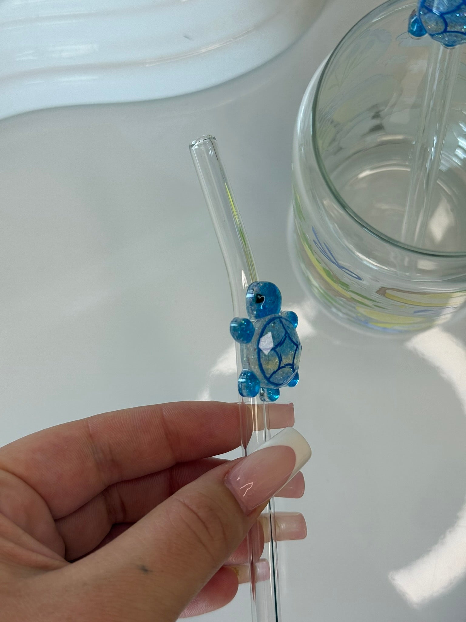 🐢 Skleněné brčko s modrou želvičkou – stylový detail s nádechem oceánu