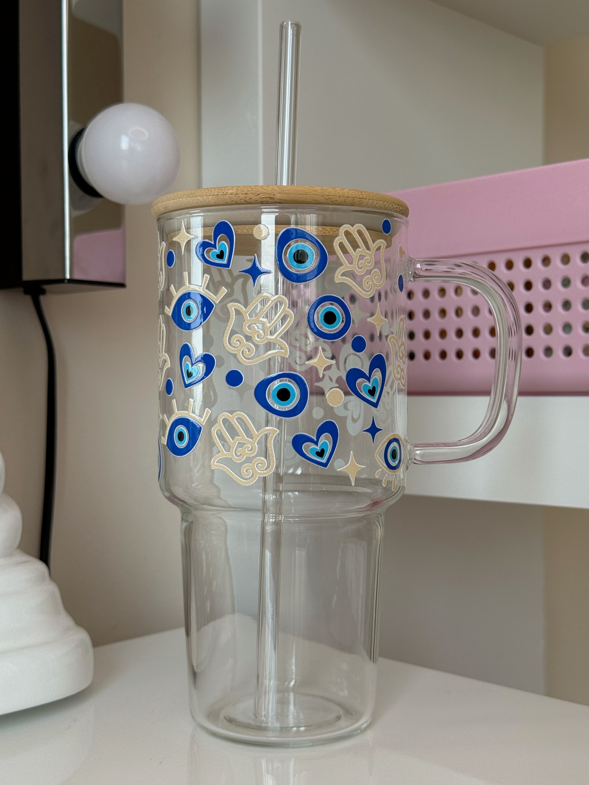Sklenička s uchem Symbol „Evil Eye“ neboli ochranné oko má chránit před negativní energií – a tahle sklenka ti navíc přinese i radost z každého doušku 💙