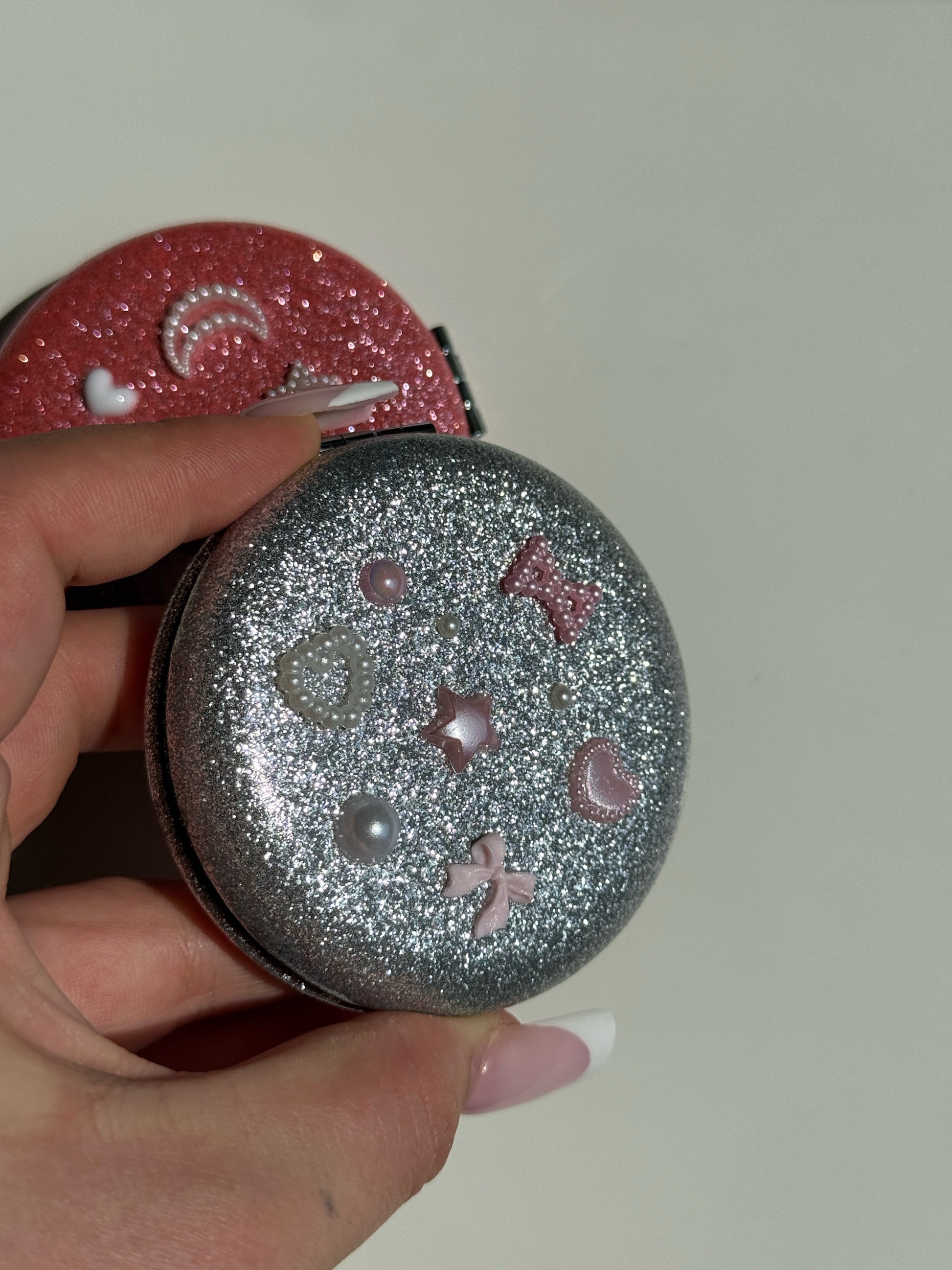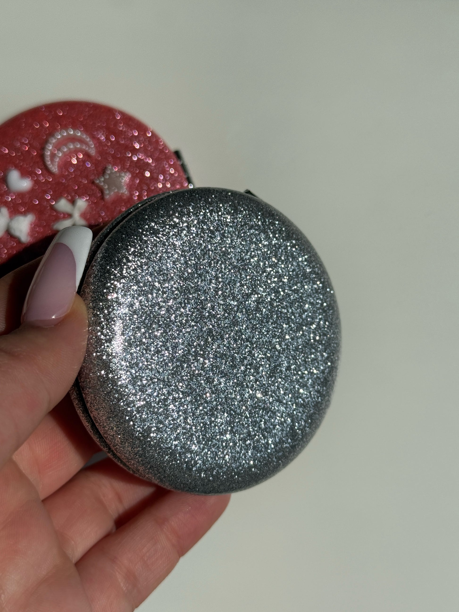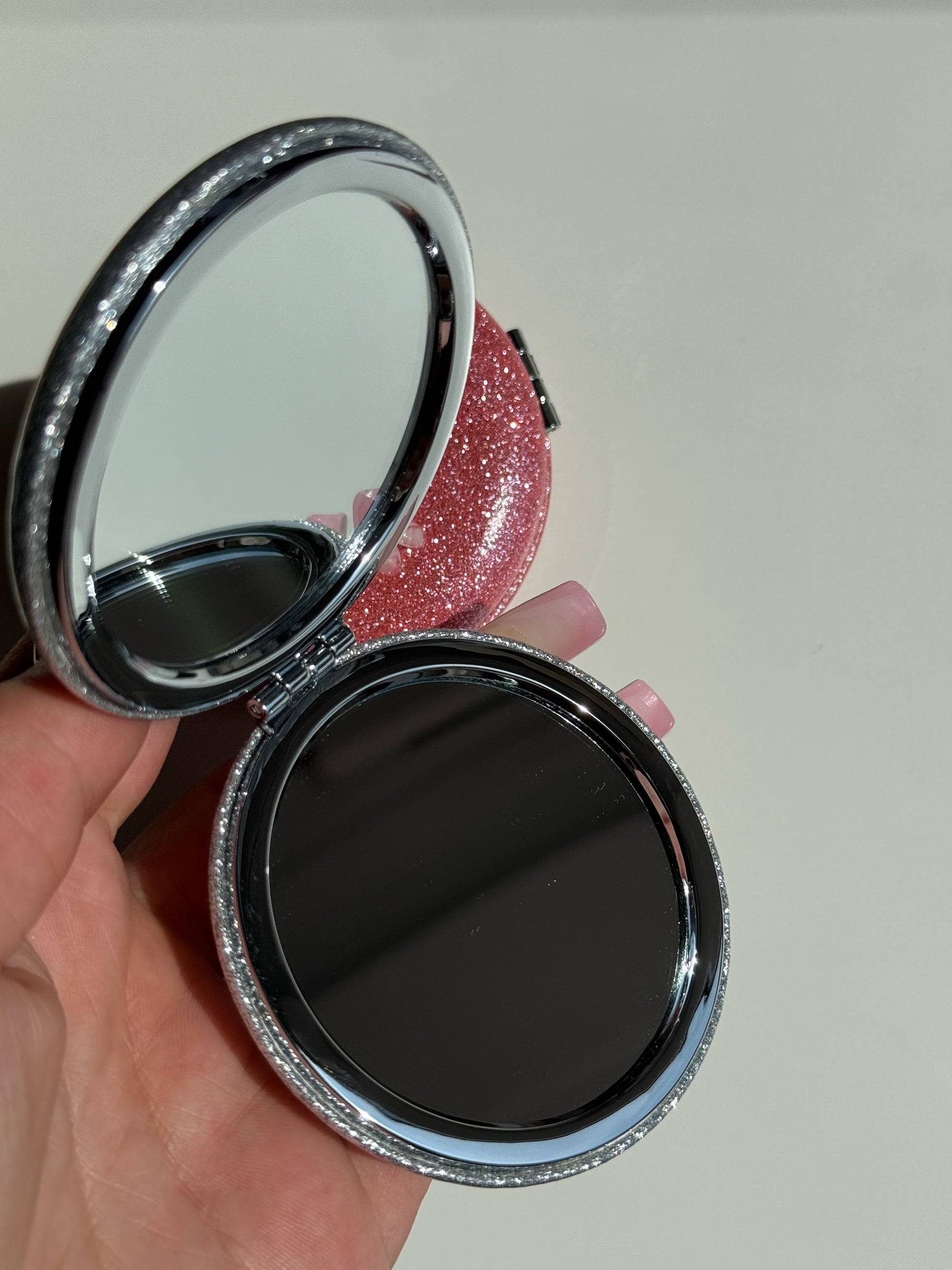 ✨ Třpytivé šedé zrcátko s ozdobami – elegance do kabelky