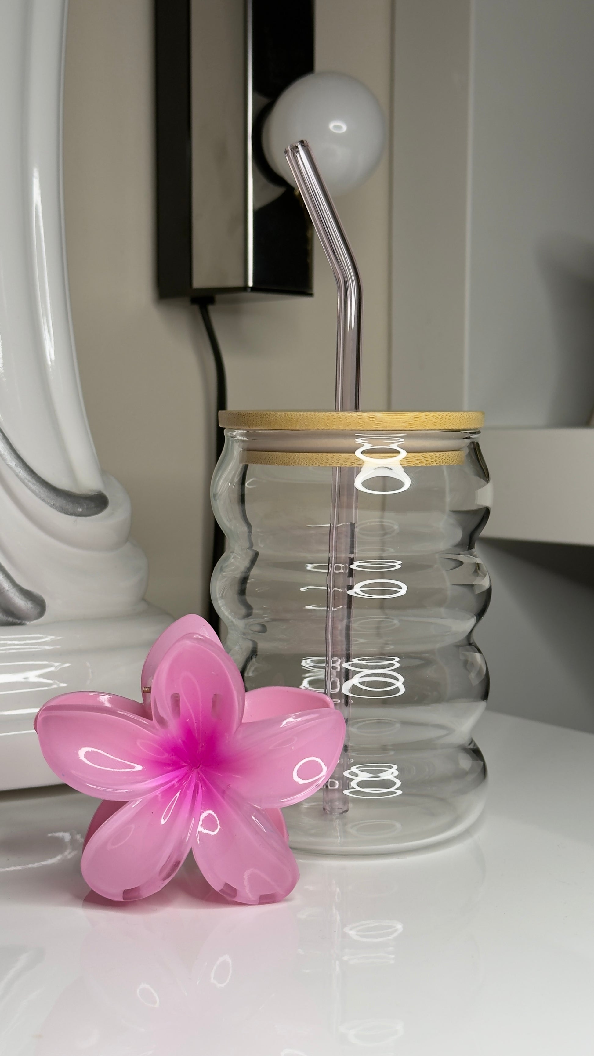 Skřipec je krásný 🤍, drží mi ve vlasech celý den a neklouže. Mám hodně husté vlasy a tenhle jako jeden z mála fakt funguje 💇🏼♀️. Sklenička je taky super ✨, vypadá stylově a piju z ní každý den 🥤🌸.