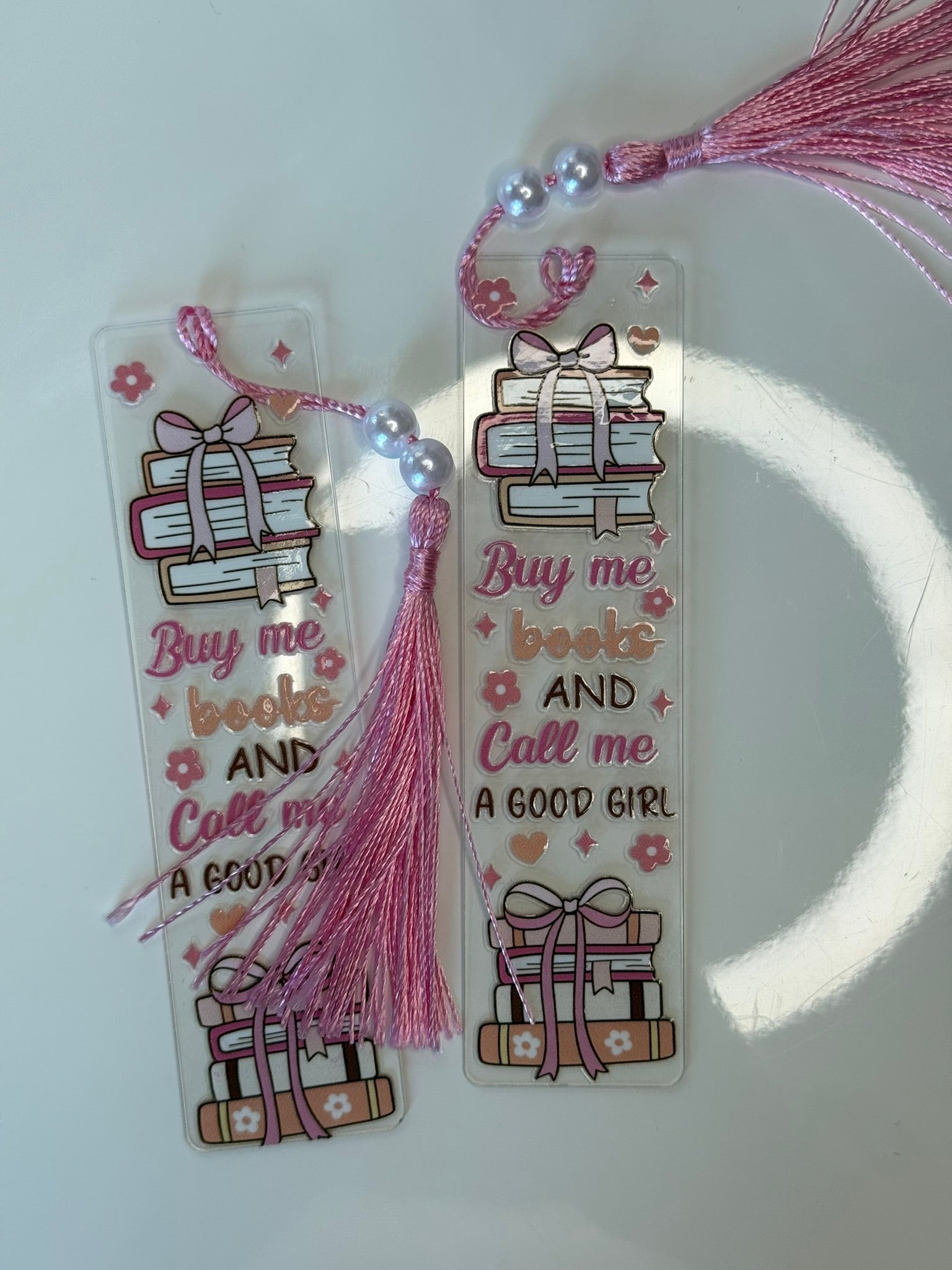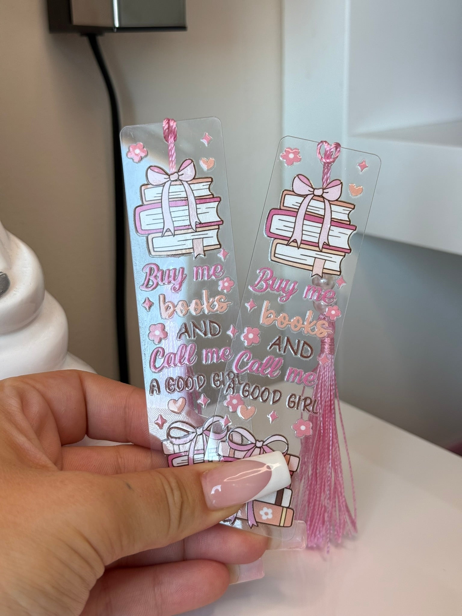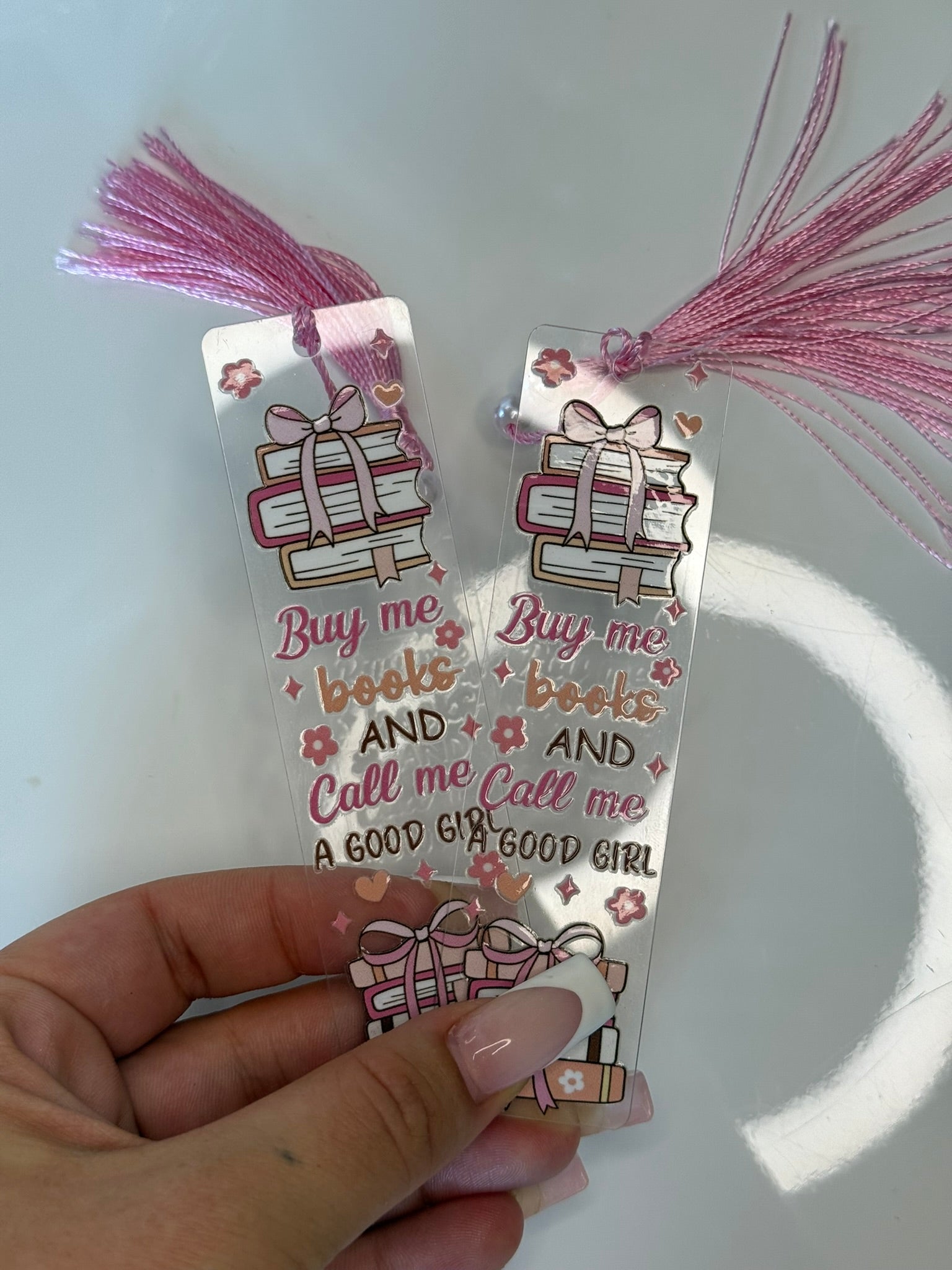 Nápis „Buy me books and call me a good girl“ je ideální pro všechny knihomolky s dávkou humoru a stylu.