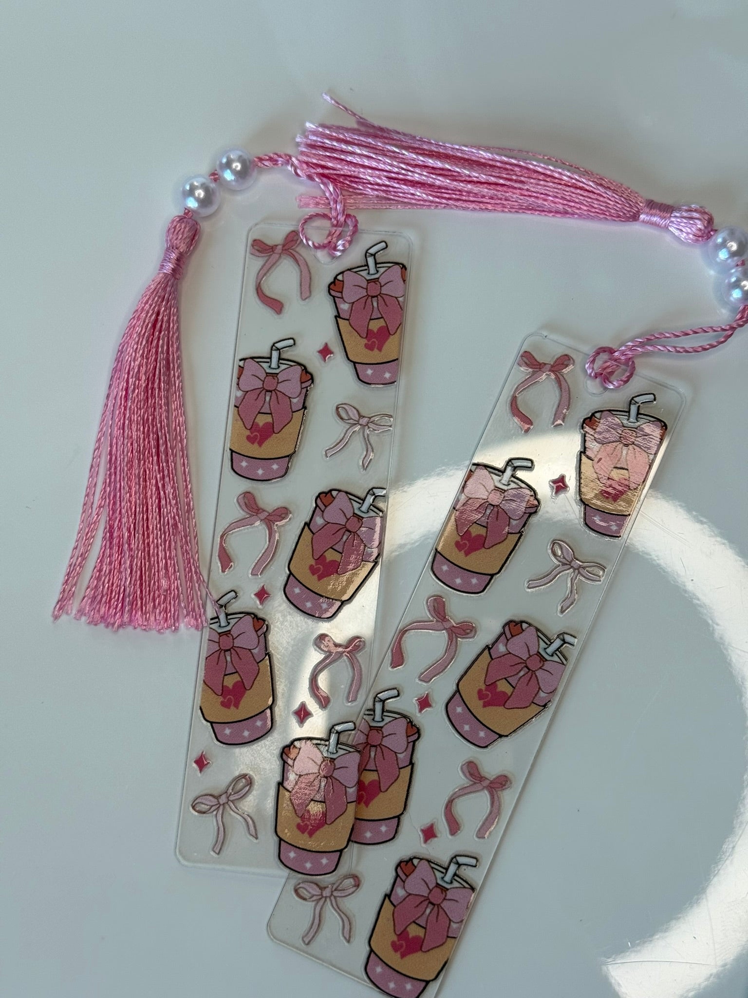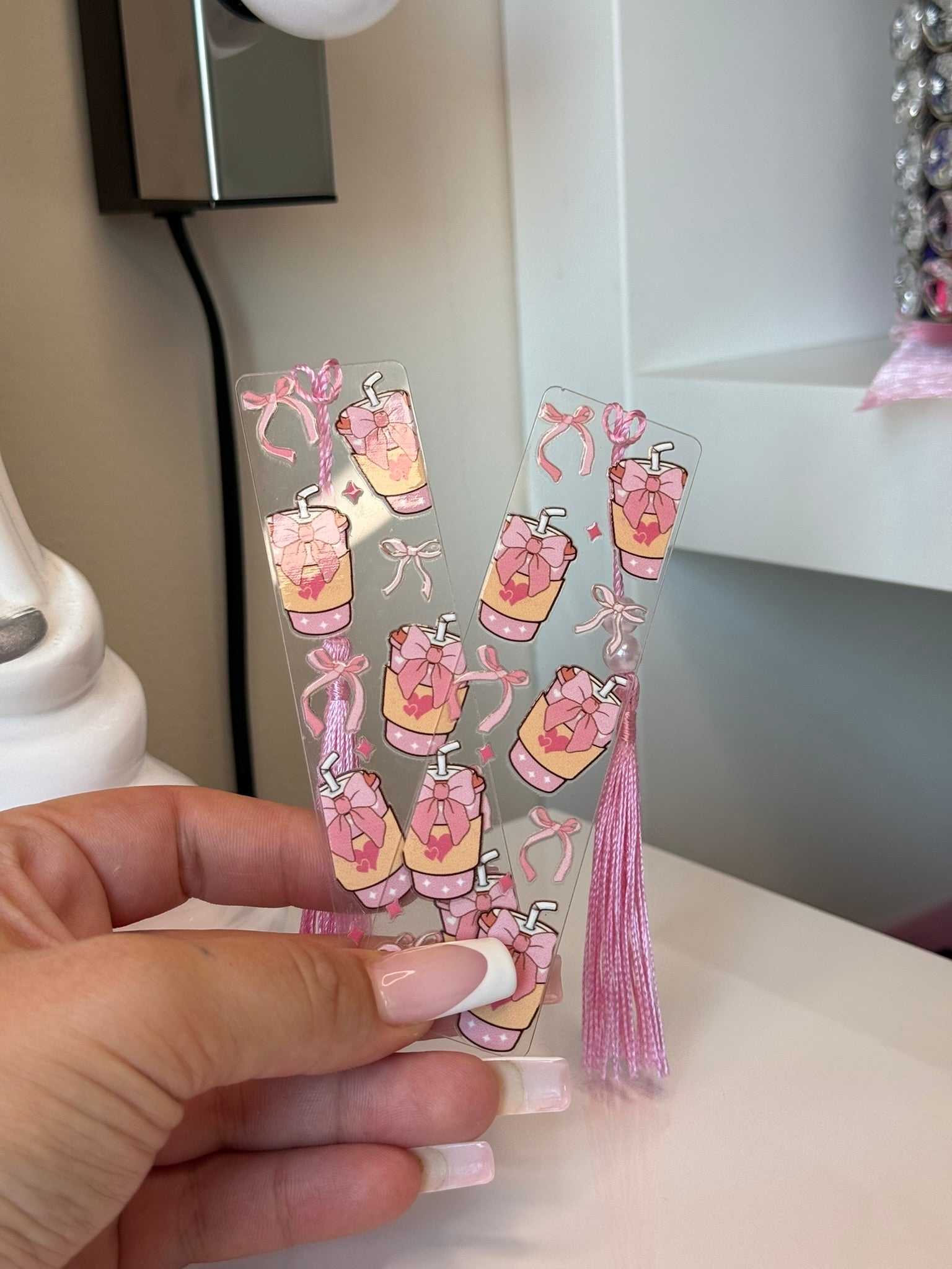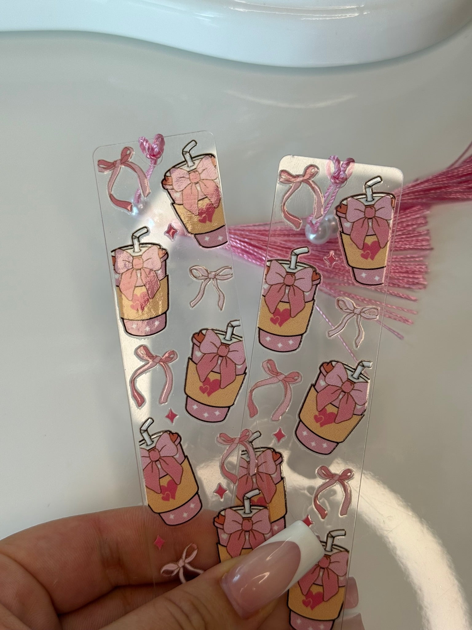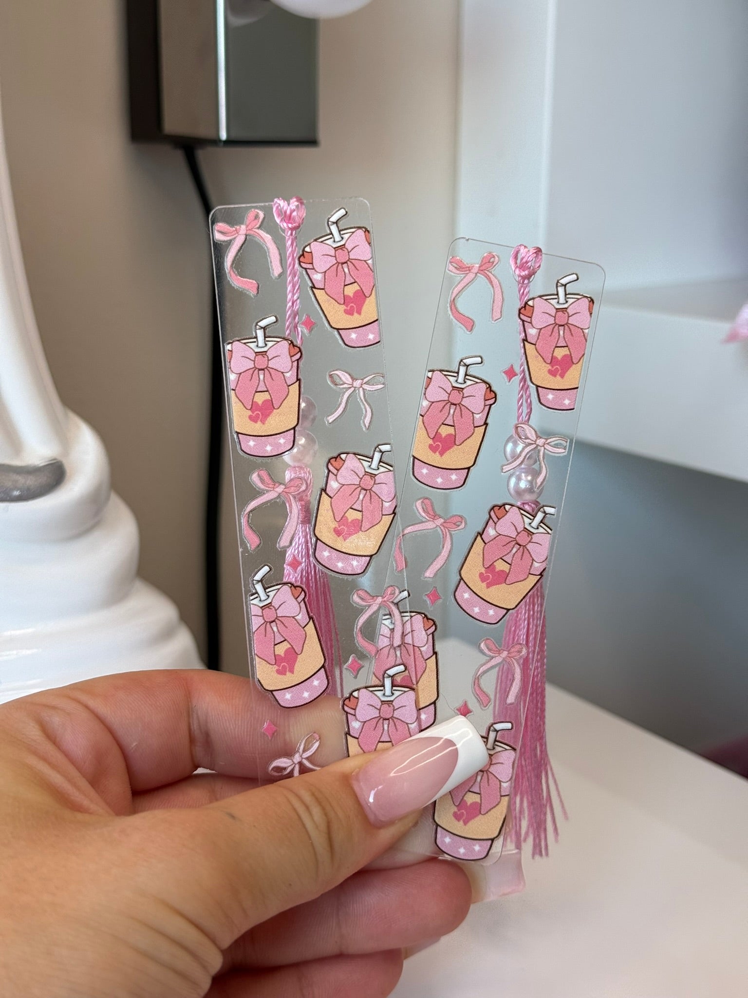 Stylová a roztomilá záložka s motivem nápoje ozdobeného růžovými mašličkami je ideálním doplňkem pro každou milovnici knih, journalingu nebo kawaii stylu. Díky jemnému střapci a kvalitnímu plastovému provedení nejen krásně vypadá, ale i dlouho vydrží. Skvělá jako dárek, sběratelský kousek nebo osobní radost do každodenního čtení.