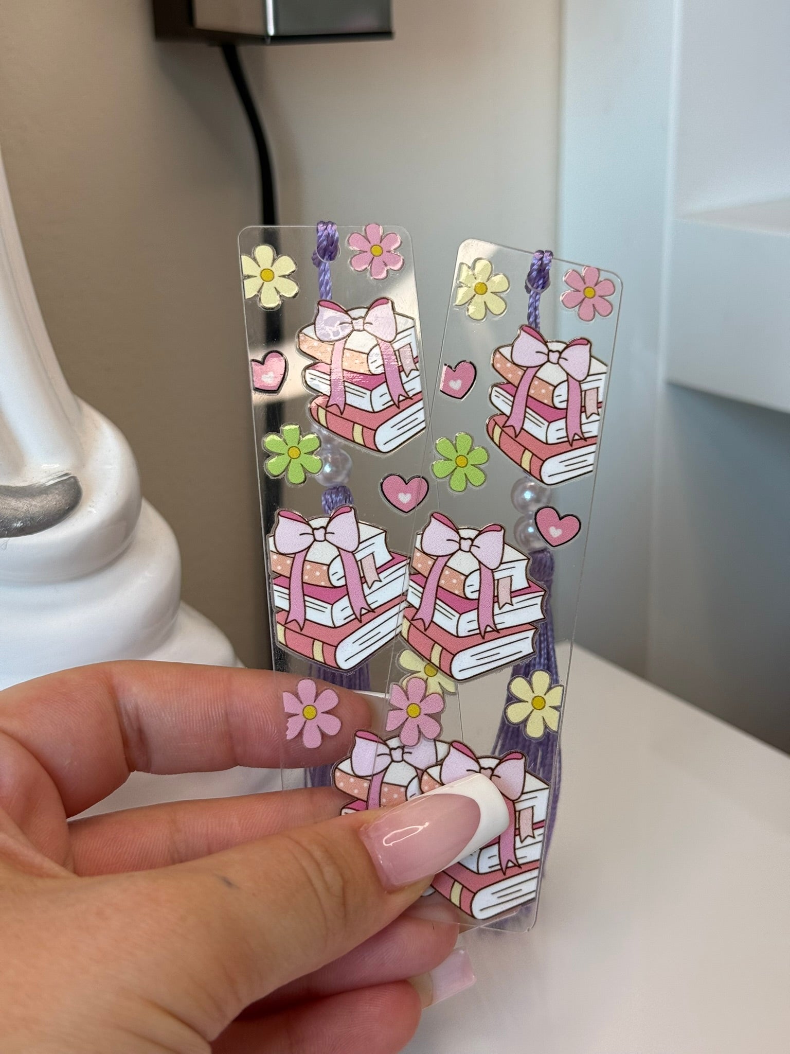 📚 Záložka s růžovými knihami a květinami – Spring Reading Vibes