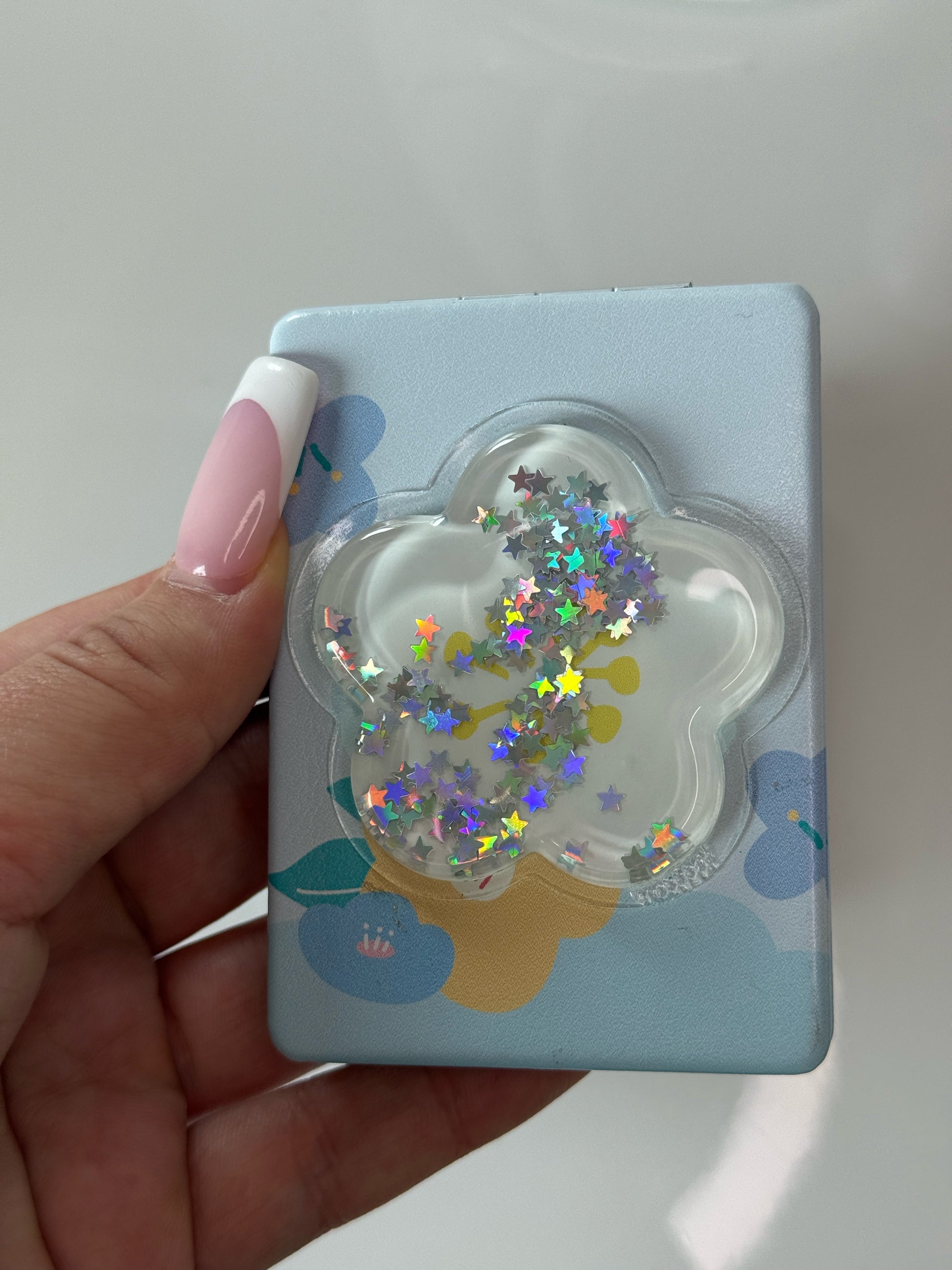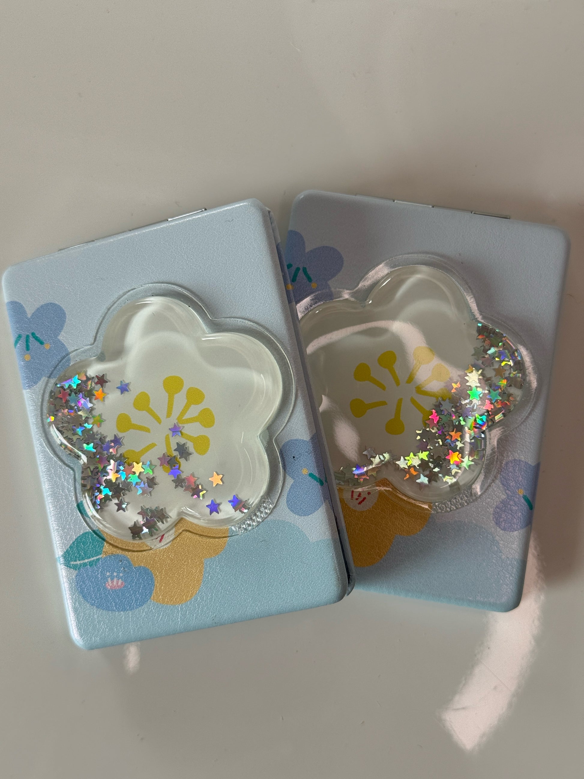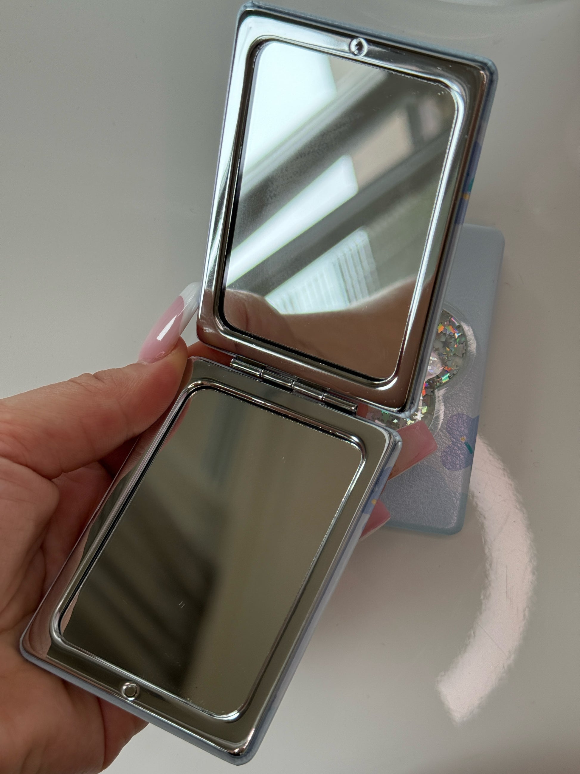 Roztomilé kapesní zrcátko s tekutinovou výplní a pohyblivými třpytkami ✨ Stačí jemně zatřást a třpytky se krásně rozletí! Skvělé do kabelky, na cesty i jako malý dárek pro kamarádku 💖